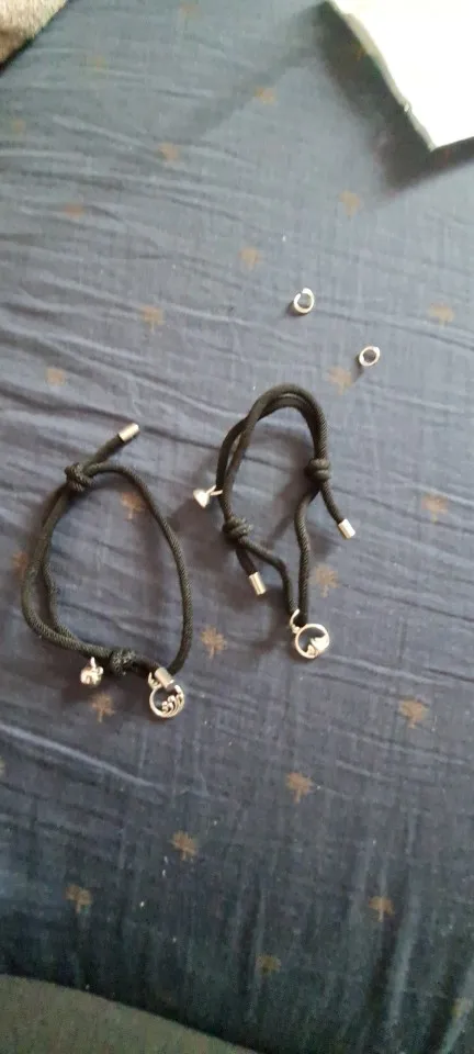 Великолепные браслеты. Хорошая тканевая веревка. Подвески двух браслетов отличаются, но оба очень красивые... Я просто буду осторожны, чтобы не положить их в воду, чтобы не сделать их ржавчину!