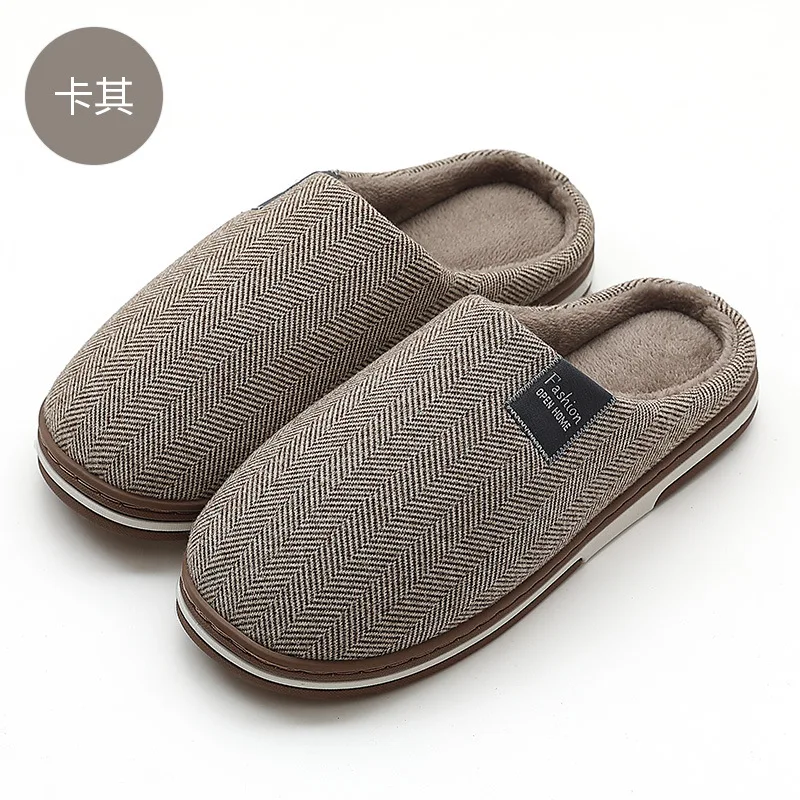 Тапочки женские и мужские хлопковые для дома, Нескользящие теплые плюшевые тапки, тапочки в полоску, Осень-зима