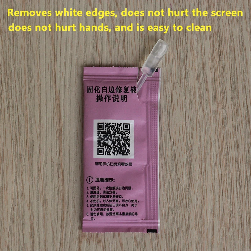 Закаленное восстановление белого края закаленной пленкиСовет: мобильный телефон идеально устраняет проблему ремонта белых краев закаленной пленки. Это чистое натуральное растительное масло и не имеет экологического ущерба для экрана Мобильный телефонУдаление белых краев занимает около 1-3 минутРодители используют этот продукт, все еще есть немного белого цвета на экране телефона, родители не должны быть осторожны, вы используете один или два часа, белый край исчезнет естественным образом, пожалуйста, не терпеливо!