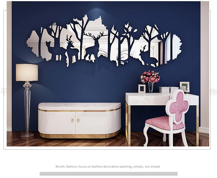 Большой размер Лесной олень Акриловые зеркальные наклейки на стену гостиной персонализированные 3d наклейки на стену украшение интерьера домашний декор