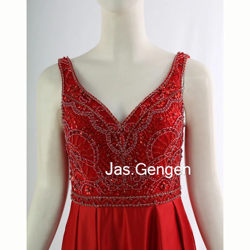 Атласное Вечернее Платье с бусинами, V-образным вырезом и карманами