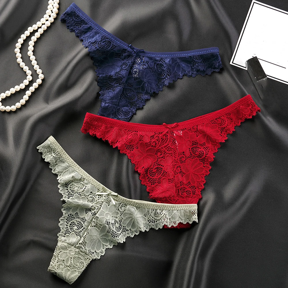 Сексуальное нижнее белье, женские трусики, стринги, бесшовные кружевные прозрачные трусики, Однотонные трусы