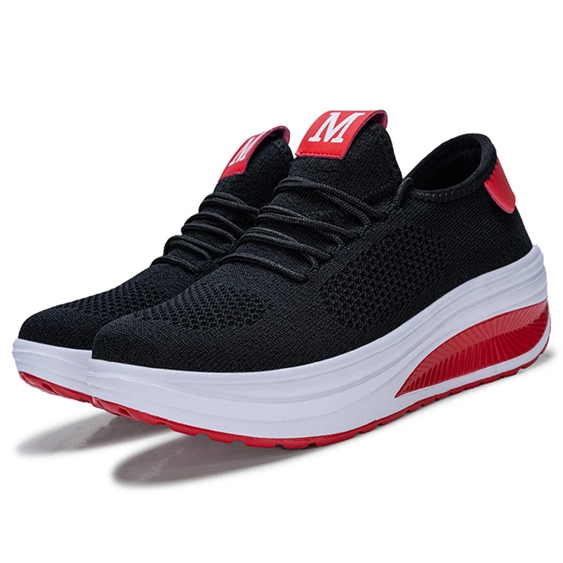 Женские сетчатые дышащие кроссовки на шнуровке, повседневная обувь на платформе, увеличивающая рост, спортивные кроссовки на танкетке, женская обувь