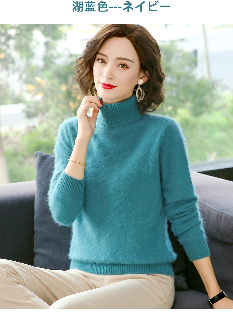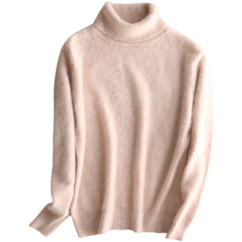 Зимний женский свитер, однотонный, из 100% норки и кашемира, вязаные пуловеры, свободный, мягкий, теплый, женский свитер с длинным рукавом