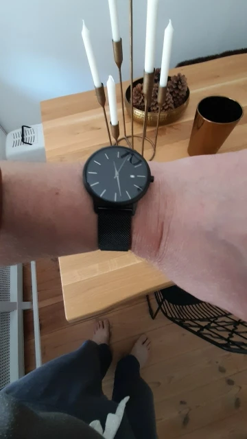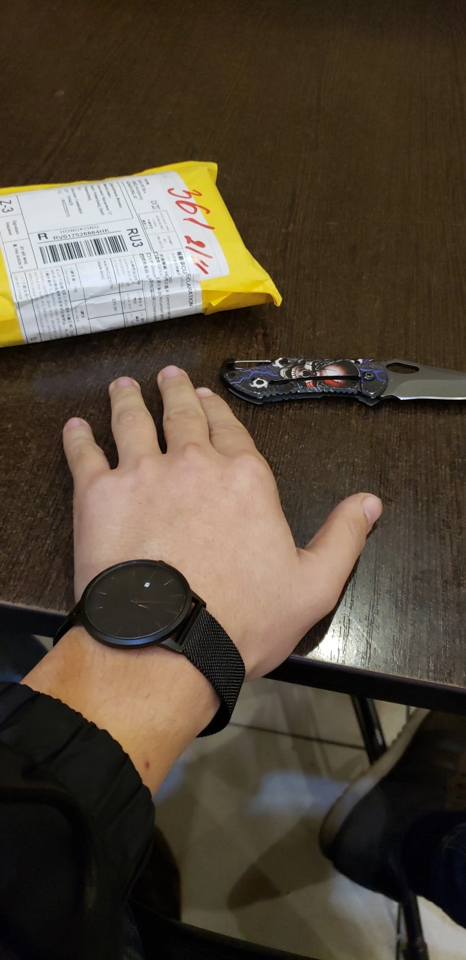 Красивые часы, кажется, хорошо сделаны из хороших материалов. Не слишком большой и очень мягкий на руке. Детали выглядят как cosmo black, это создает красивое сочетание и контрастность с общим черным цветом. Прибыл очень быстро, всего 9 дней с момента моего заказа, пока не доставили в мой дом.