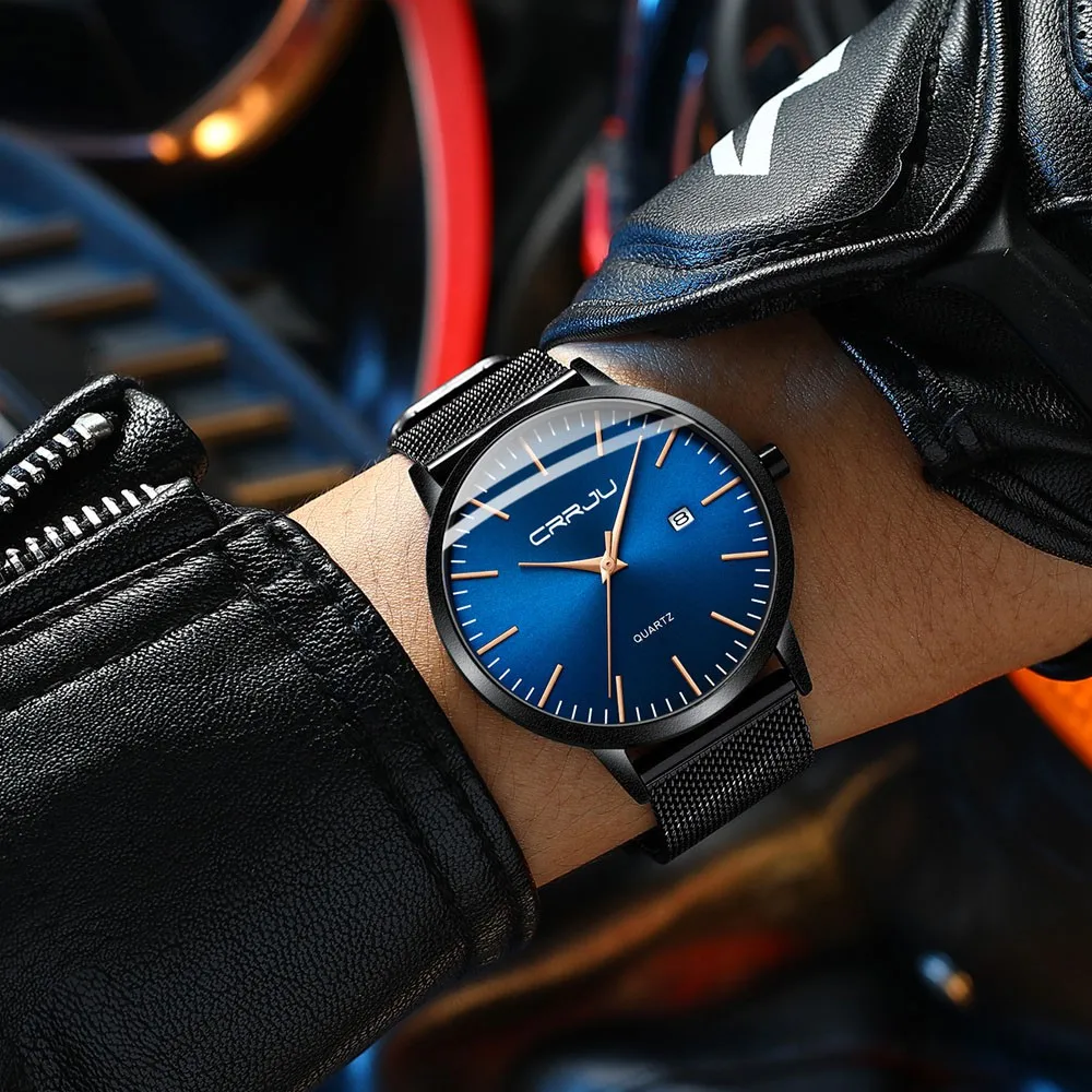 CRRJU модные мужские часы ультра тонкие кварцевые часы мужские повседневные тонкие сетчатые стальные водонепроницаемые спортивные часы черные Relogio Masculino