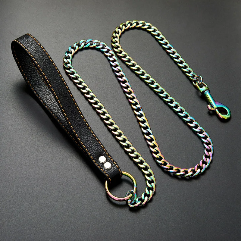 Ошейник и поводок для собак, цепь-чокер из нержавеющей стали с цветным покрытием, 18 К, для питбуля ротвейлера, аксессуары для домашних животных