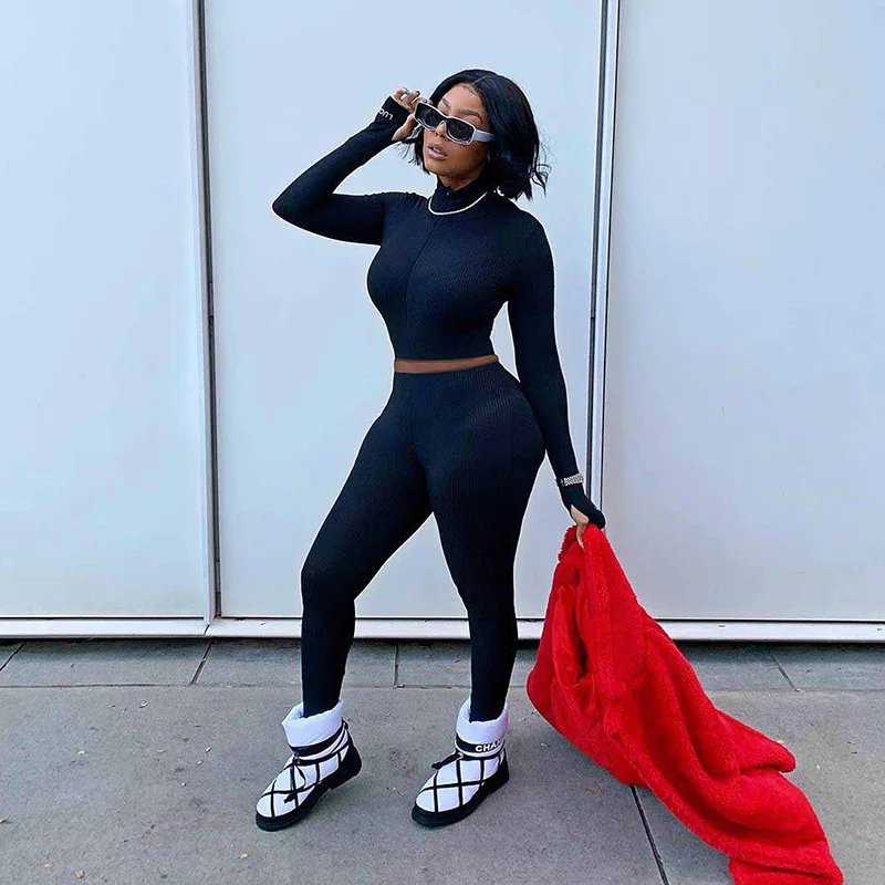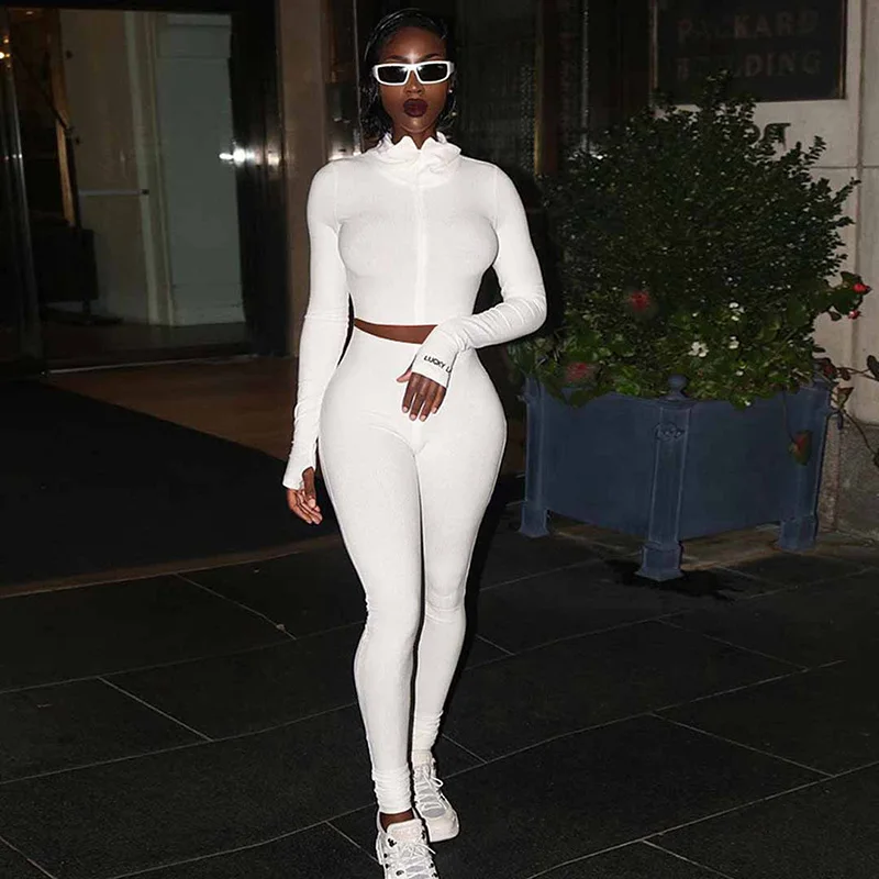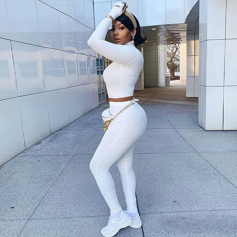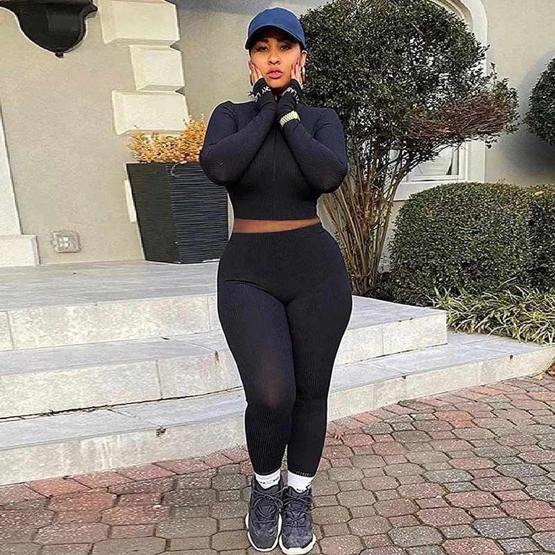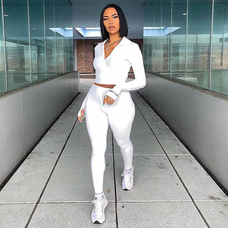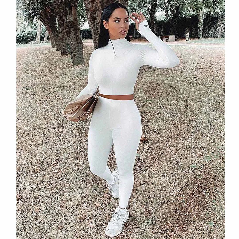 Модный комплект из 2 предметов, женский спортивный костюм Lucky Label twedelige, осенне-зимний обтягивающий ТРИКОТАЖНЫЙ УКОРОЧЕННЫЙ ТОП для бега и брюки, женский спортивный костюм