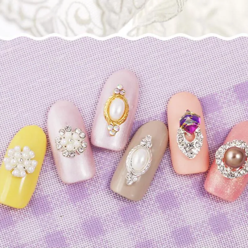 3D украшения для ногтей с жемчугом, 10 шт., металл + сплав, наклейки на ногти, стразы, кристаллы, сделай сам, подвески, товары для ногтей