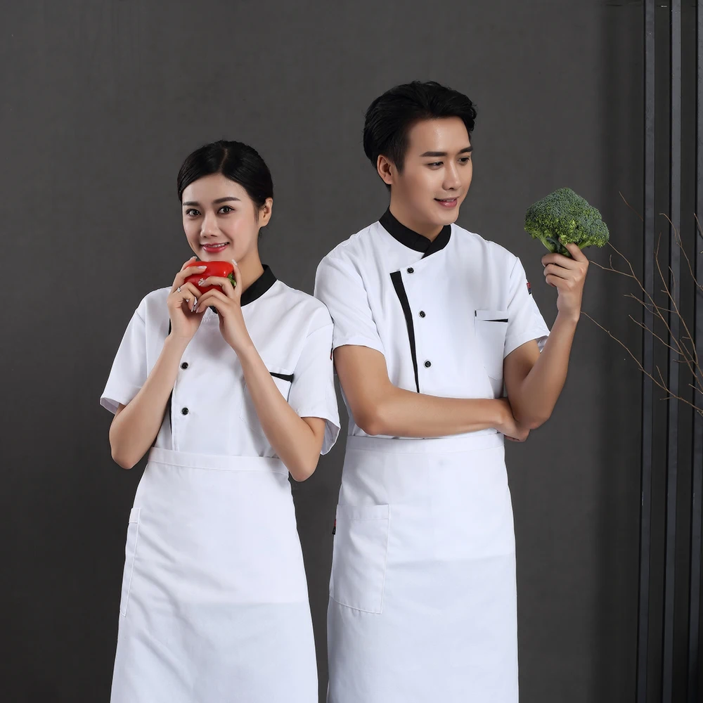 Летняя рубашка шеф-повара с коротким рукавом Униформа шеф-повара Ресторан кейтеринга пекарня повара официанта шляпа фартук рабочая одежда Парикмахерская поварская куртка