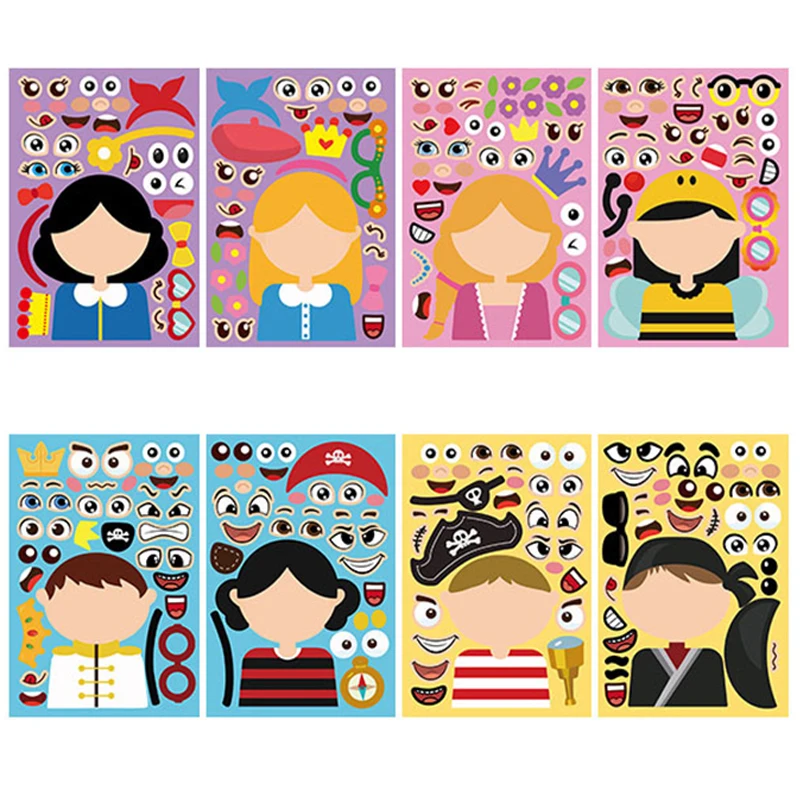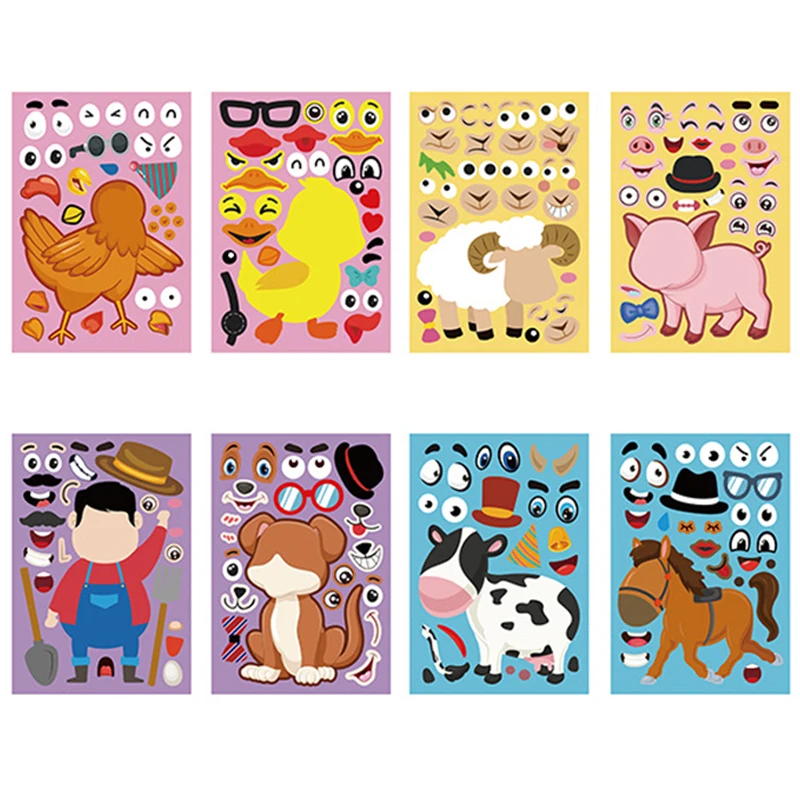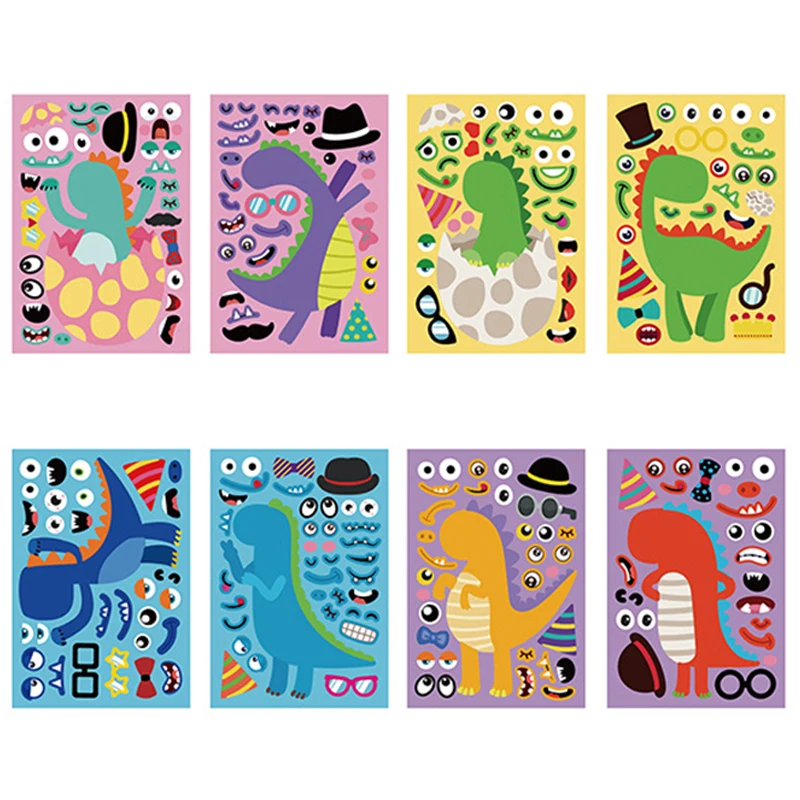 8 шт. DIY головоломки мимикой наклейки в виде динозавра с животными детский сад распознавания навыки обучающие игрушки