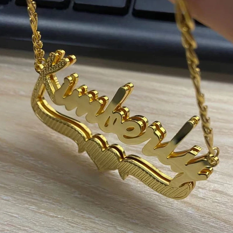 Ожерелье с именем на заказ, Двухслойное покрытое табличкой, 3D ожер...
