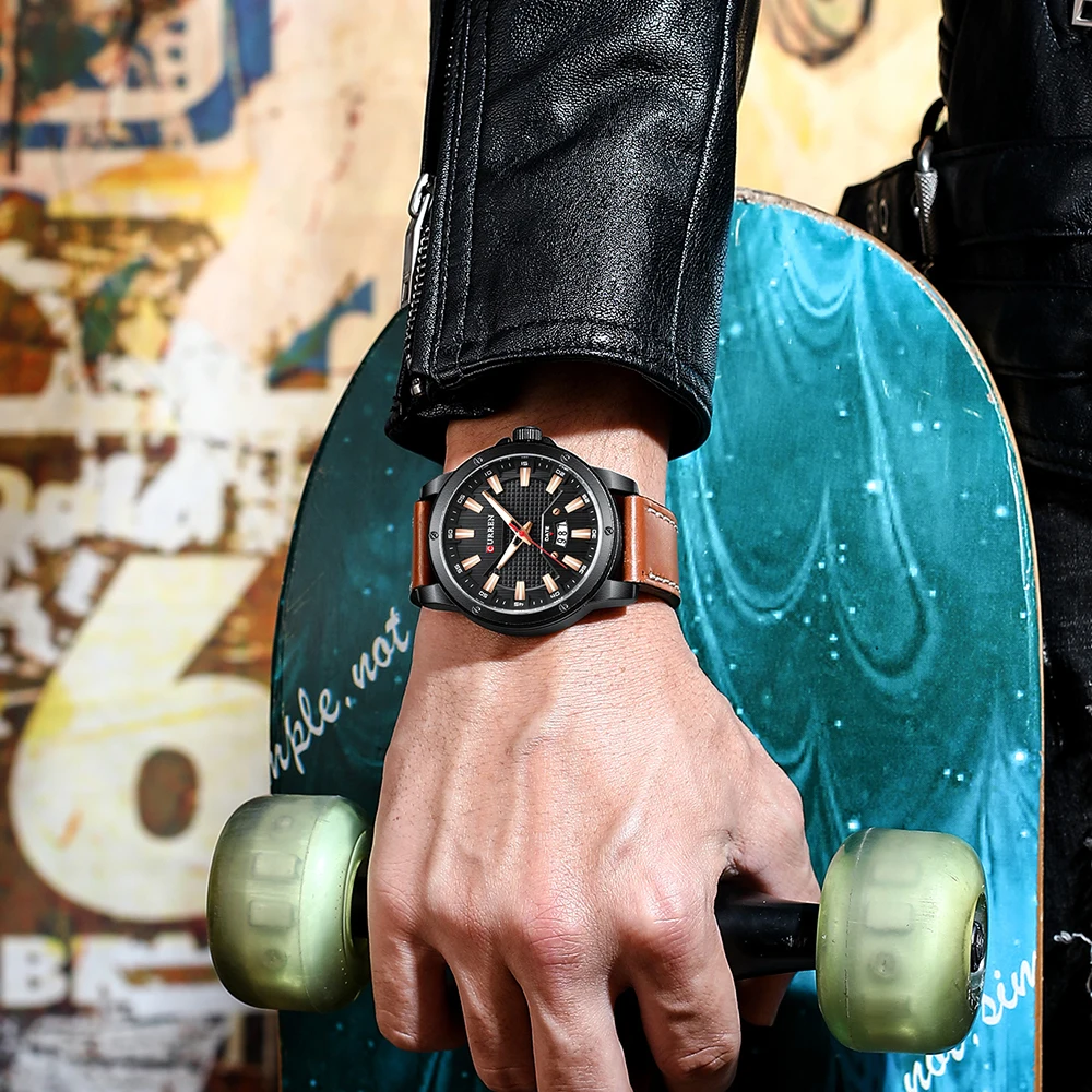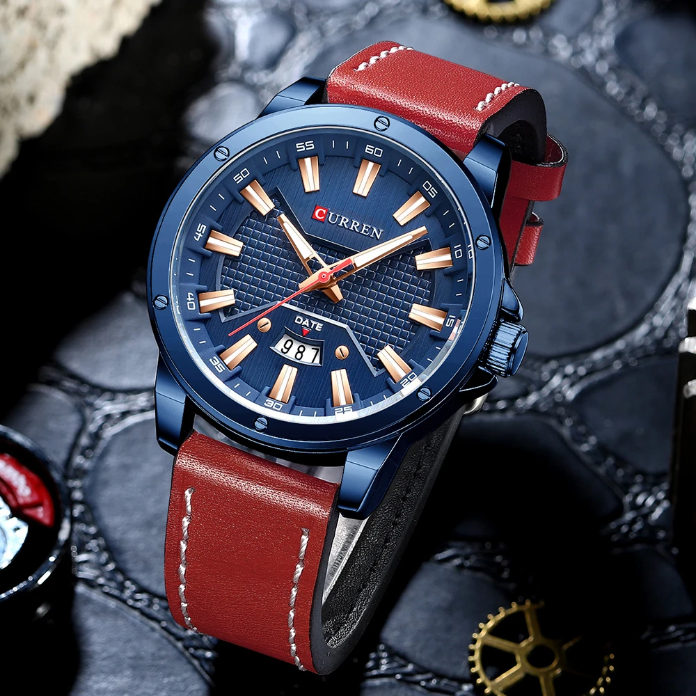 Мужские кварцевые часы Curren, деловые повседневные часы с кожаным ...