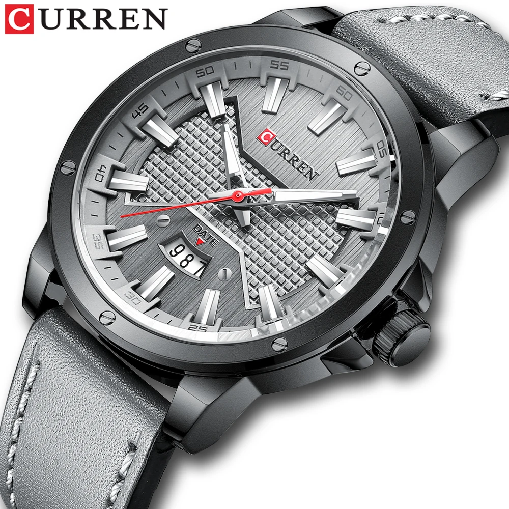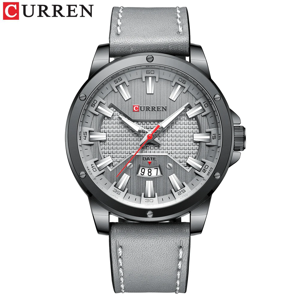 Мужские часы, кварцевые аналоговые часы CURREN, наручные часы для мужчин, Модный водонепроницаемый кожаный ремешок-серый