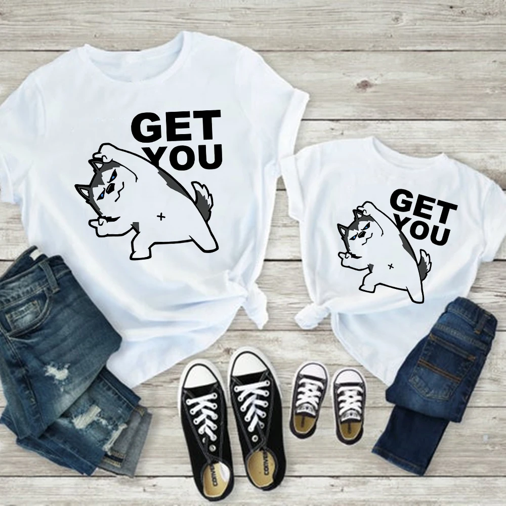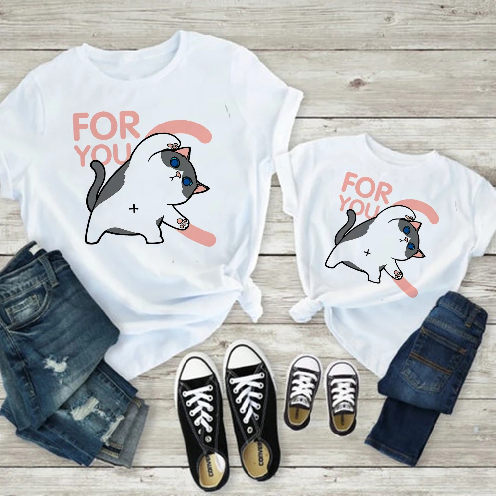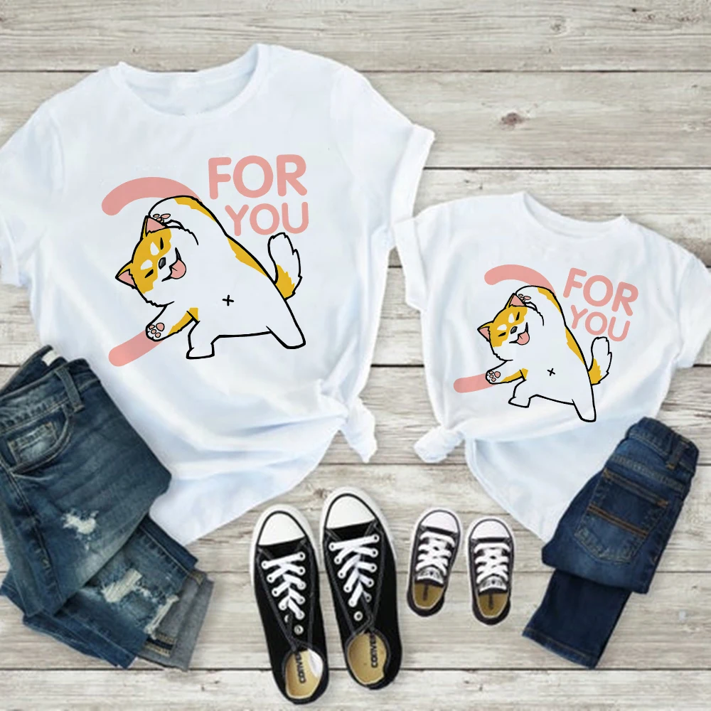 Лидер продаж, одежда для мамы и дочери, одинаковый семейный вид, футболка для мамы и детей, футболка для груди, отца, сына, Симпатичная кошка, собака, животное, Графический Топ, дешевый, для родителей и детей