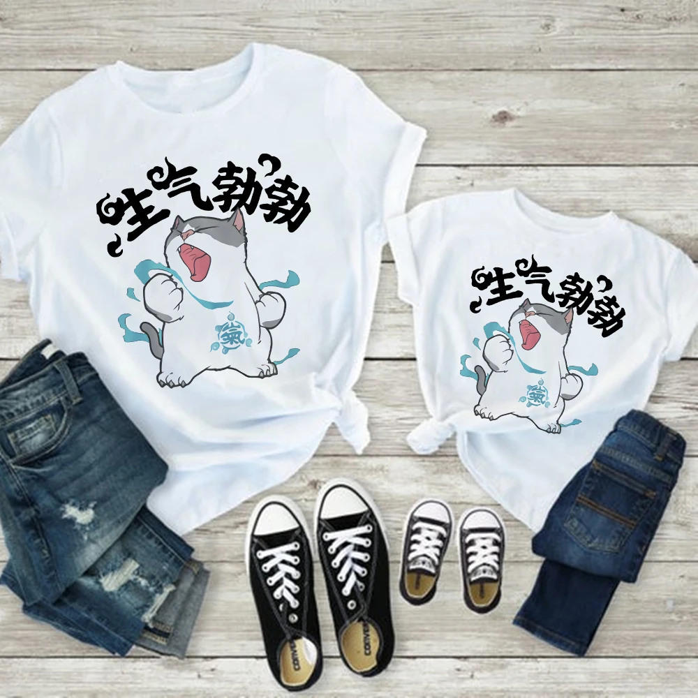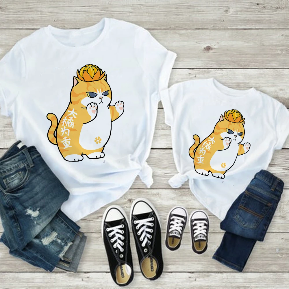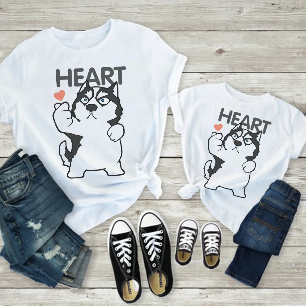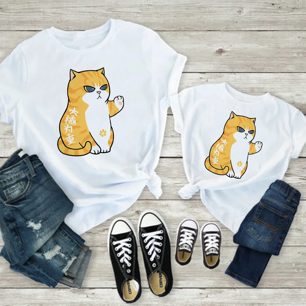 Лидер продаж, одежда для мамы и дочери, одинаковый семейный вид, футболка для мамы и детей, футболка для груди, отца, сына, Симпатичная кошка, собака, животное, Графический Топ, дешевый, для родителей и детей