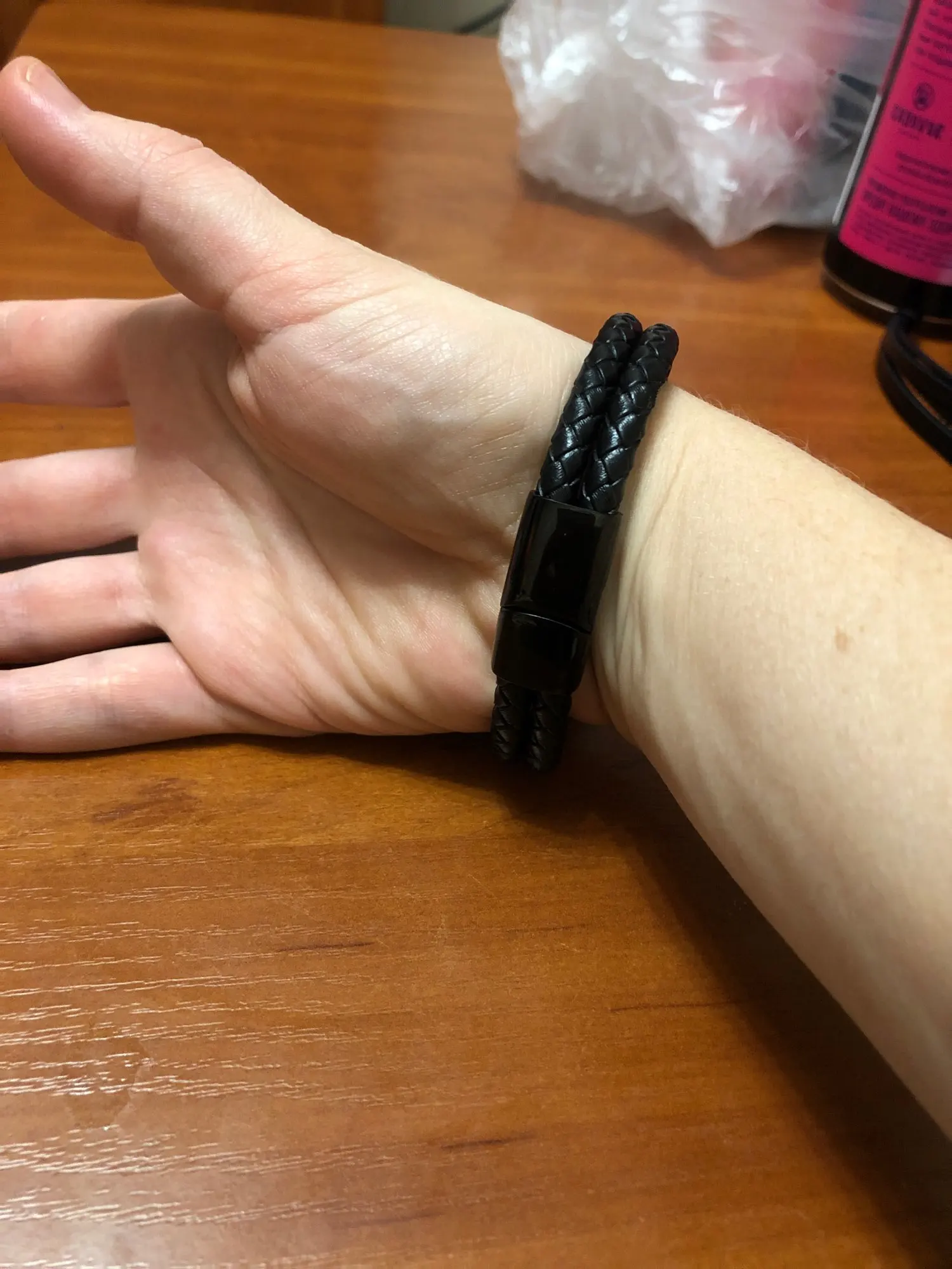 Браслет отличный. На небольшую руку хорошо подошло. Застежка - вставка плюс магнит внутри похоже. Надеюсь, что кожа и прослужит долго. Выглядит - супер!