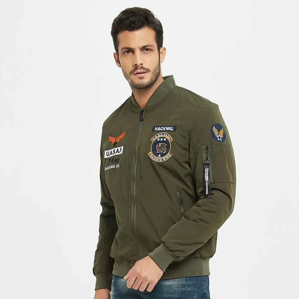 Мужская куртка-бомбер, утепленная бейсбольная куртка с длинным рукавом, ветровка на молнии, верхняя одежда, мужская куртка-ветровка