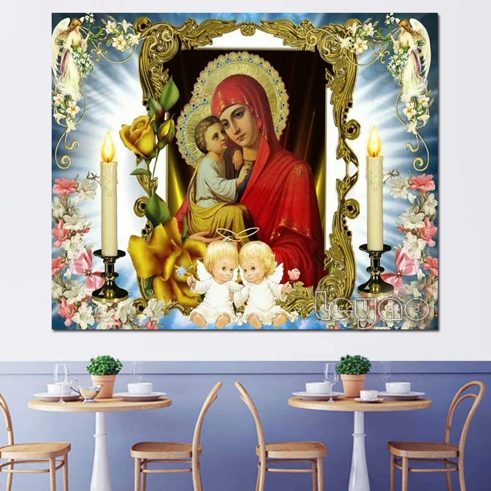 5d квадратная круглая алмазная живопись, Дева и ребенок Казани, пра...