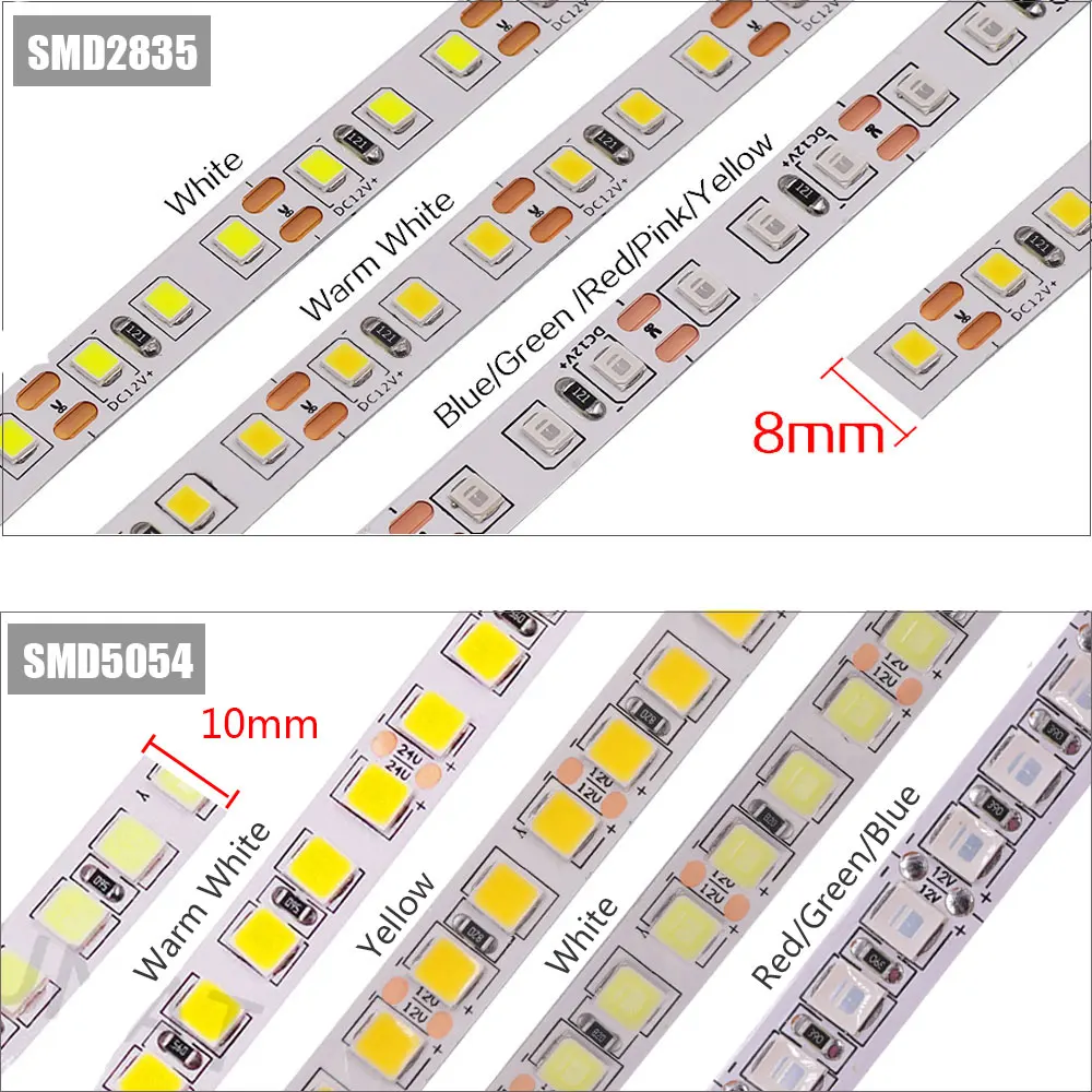 Рабочее Входное напряжение: 12 В постоянного токаКоличество СВЕТОДИОДНЫЙ: 60 светодиодный s/метр, 120 светодиодный s/метрЦвет печатной платы: белыйУгол луча: 120Рабочая температура: от-20 °C до 50 °CУстановка: с клейкой лентой 3M на задней стороне для липкихУровень защиты: не водонепроницаемый IP20/водонепроницаемый IP65/водонепроницаемый IP67Цветовая температура: холодный белый (6000-7000K), теплый белый (3000-3500K), красный, зеленый, синий, желтый, розовый, голубойИсточник питания:-Светодиодная лента DC12V: для подключения этой полосы необходимо использовать источник питания постоянного тока 12 В, не используйте более 12 ВРазмер:-12 В SMD5054: 10 мм (Ш) x 2 мм (В).-12 В SMD2835(60/120 светодиодов/м): 8 мм (Ш) x 2 мм (В). SMD5054 60 Светодиодный/м: ширина печатной платы 10 мм, 6-8 Вт/м, 8-10 лм/светодиодныйSMD5054 120 светодиодный/м: ширина печатной платы 10 мм, 10-12 Вт/м, 14-16 лм/светодиодныйSMD2835 60 Светодиодный/м: ширина печатной платы 8 мм, 3-4 Вт/м, 6-8 лм/светодиодныйSMD2835 120 светодиодный/м: ширина печатной платы 8-10 мм, 5-7 Вт/м, 8-10 лм/светодиодныйПримечание:1. Пайка очень нормальная в электронных продуктах, не имеет проблем с качеством.2. Светодиодная лента может быть паяна от шт до 5 м длины, если вы возражаете, не размещайте заказ. Посылка включает в себя:Светодиодная лента 5 м-1 шт.(Без источника питания, без контроллера)