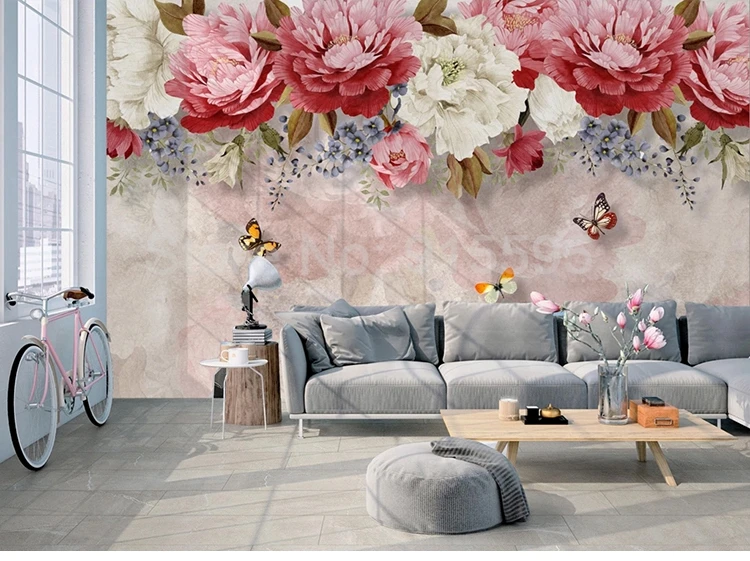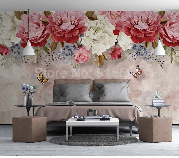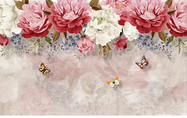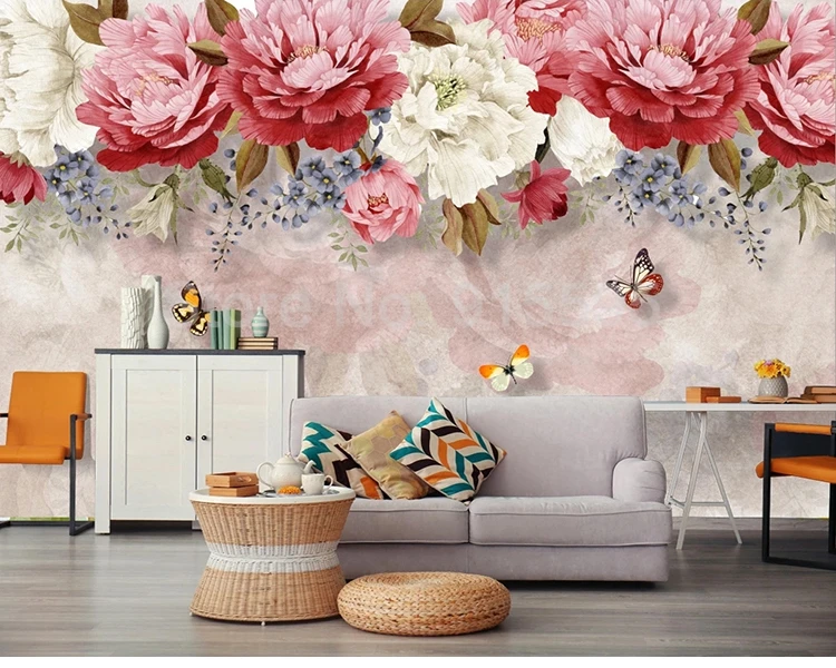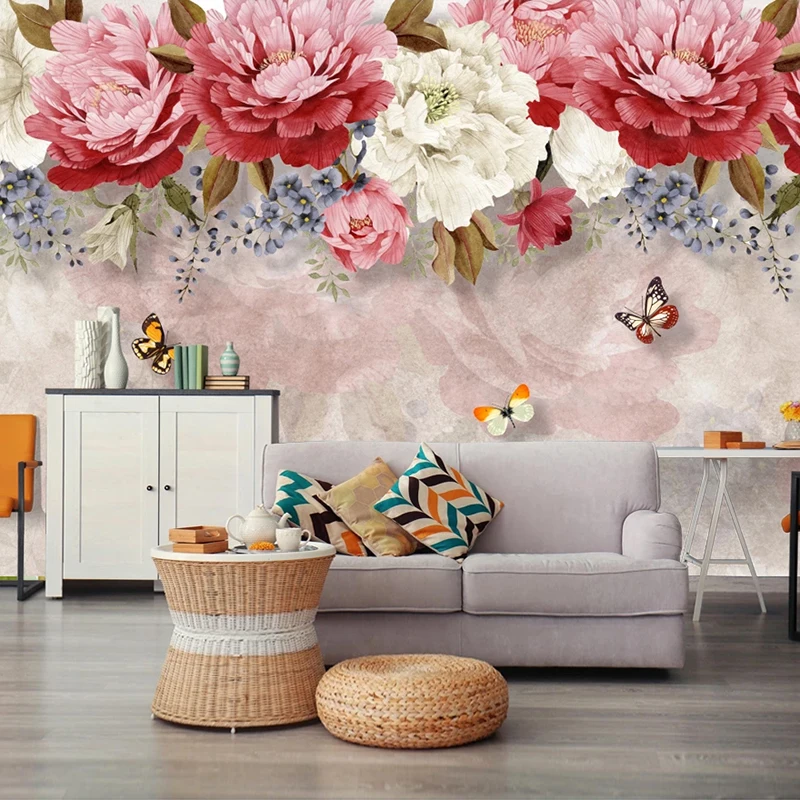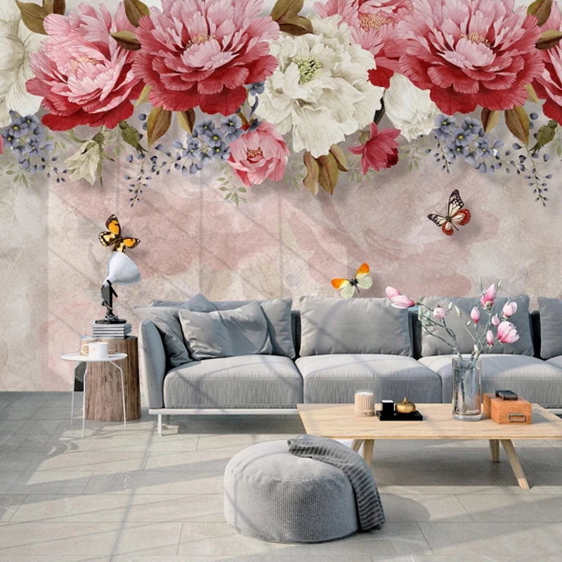 Пользовательские 3D Настенные обои ретро абстрактные пионы Цветы Ка...