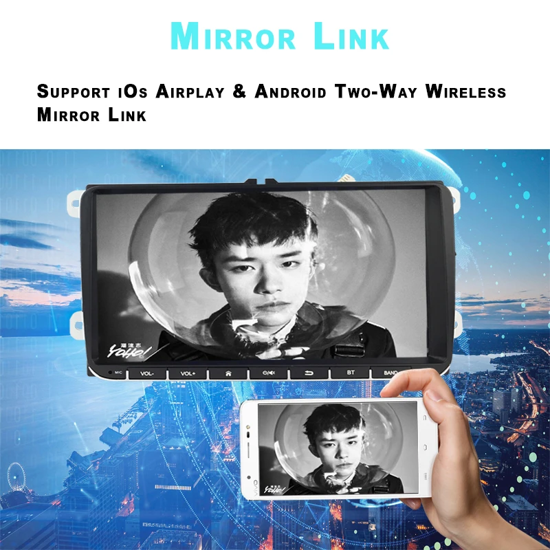 Автомагнитола 9 дюймов, 2 Din, GPS, Android, для VWSeat, Wi-Fi, FM, AM, Bluetooth, сенсорный экран, 1024x600 пикселей, BT Mirror Link, USB, Airplay, Лидер продаж