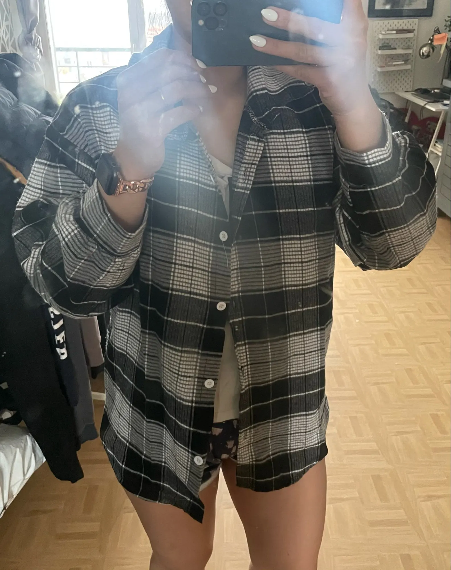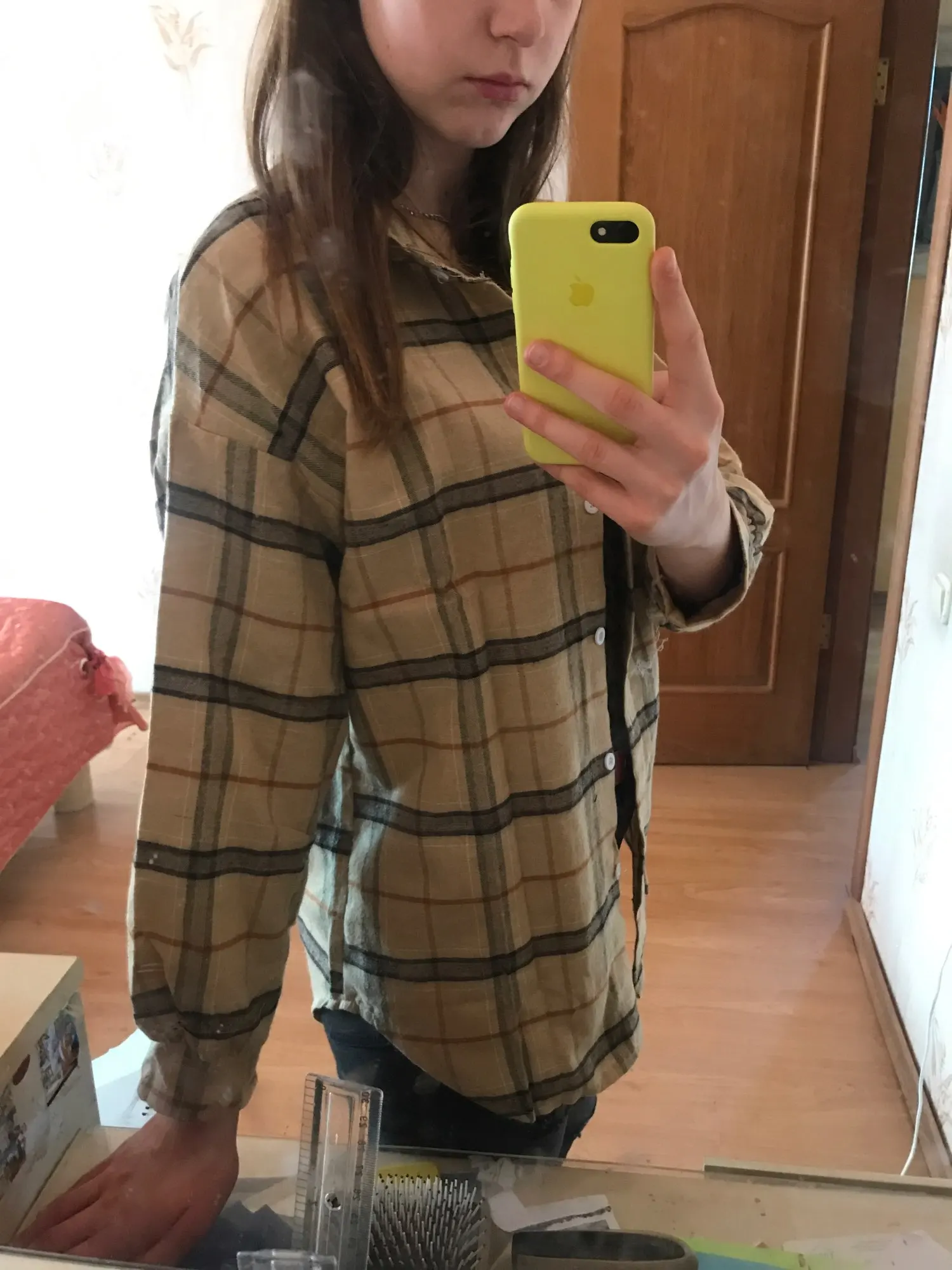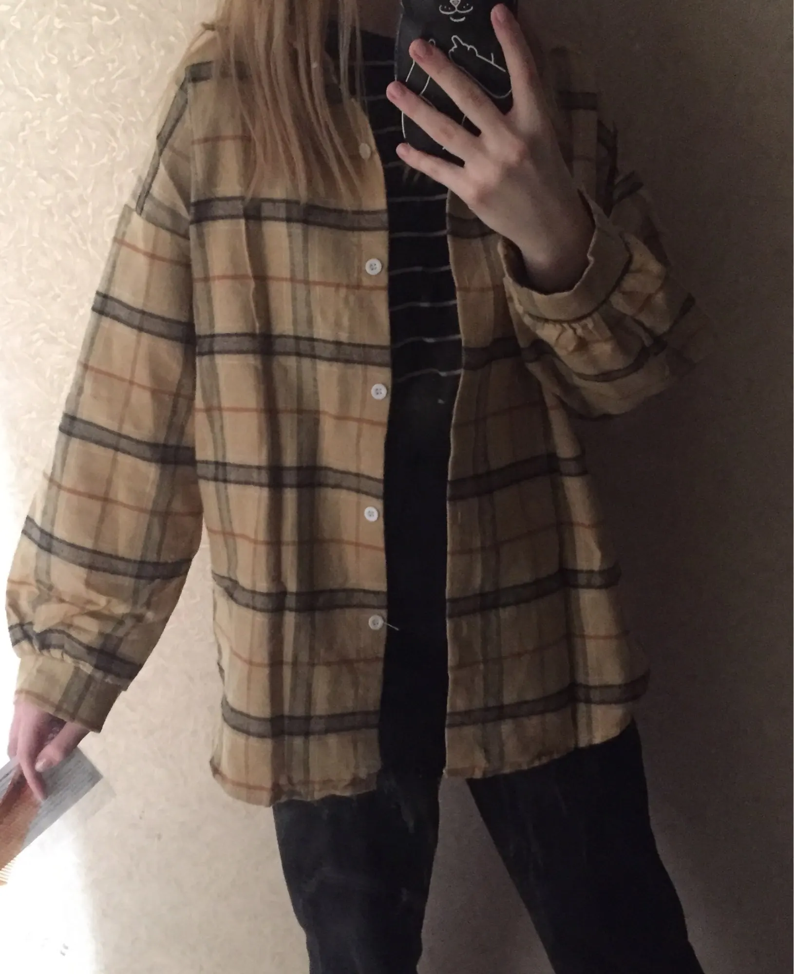 Бежала за ней на почту как только увидела что она пришла " в 18:56 " почта до 8 Рубашка просто сделала мой вечер, очень класная ещё и плотная :) Мне в добавок в неё завернули ращёску Из минусов для себя буду иметь ввиду что на развер M в застёгнутом виде она совсем немного усковата и под свободные широкие джинсы таким образом не очень подойдёт