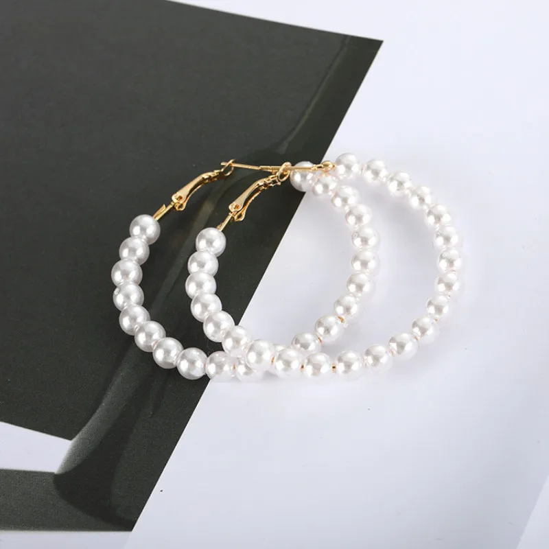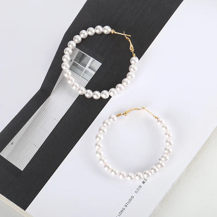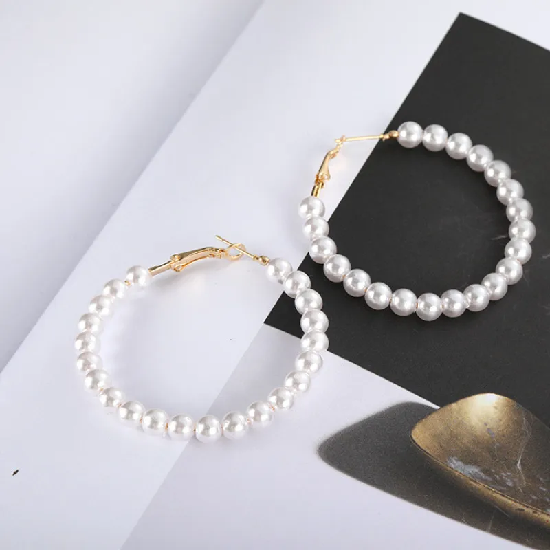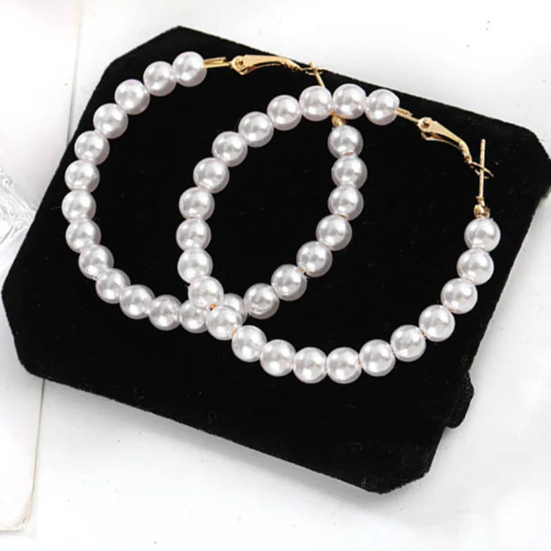 Серьги-кольца с искусственным жемчугом женские, Крупные круглые ушн...