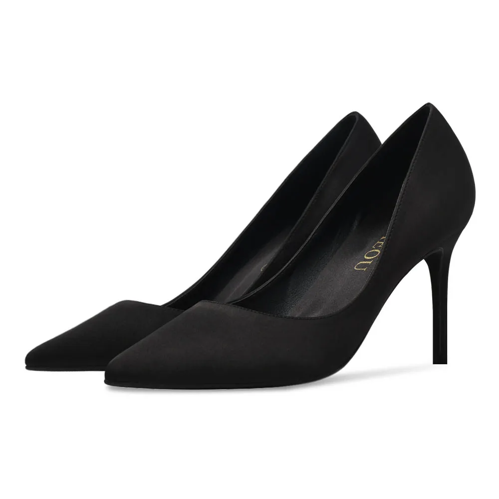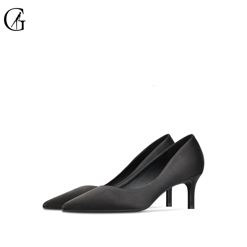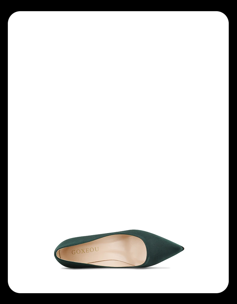Женские атласные туфли GOXEOU, черные туфли-лодочки с острым носком, на высоком каблуке 6, 8, 10 см, для свадебной вечеринки, офисные туфли, размеры 32-46
