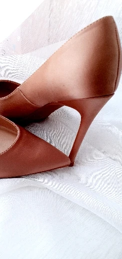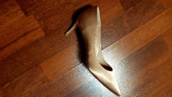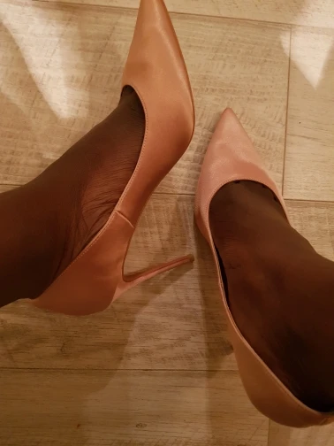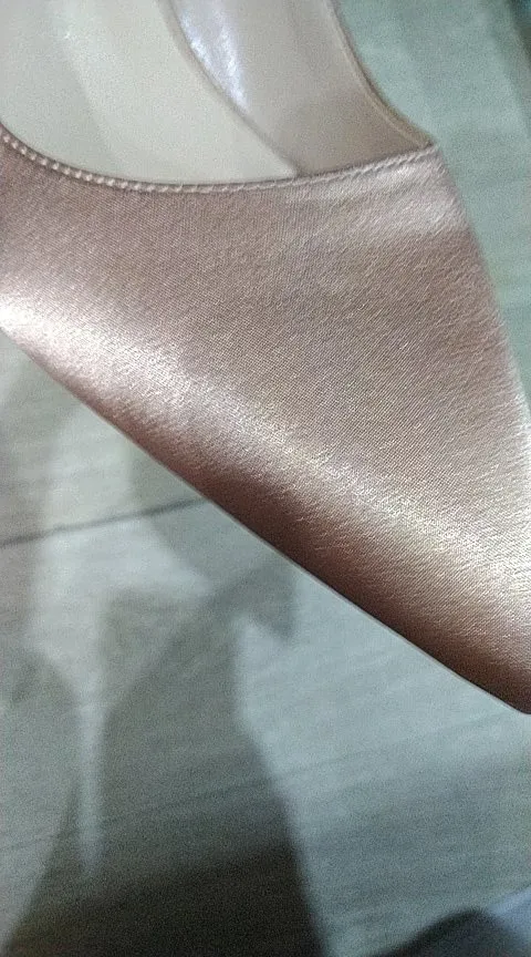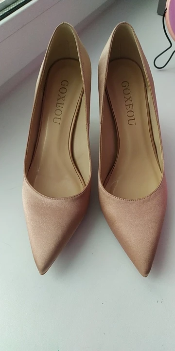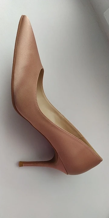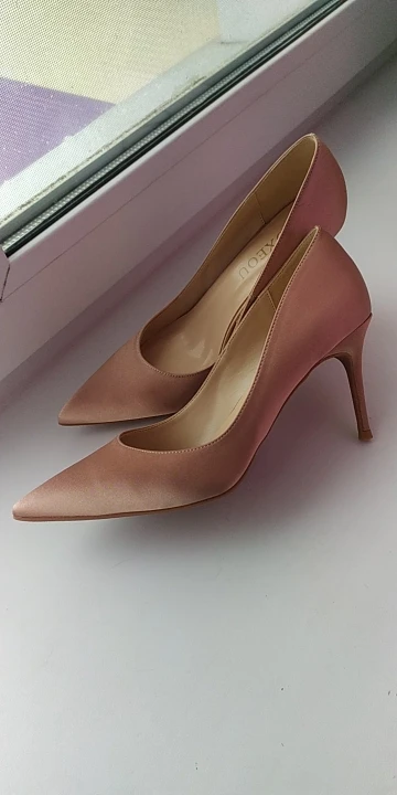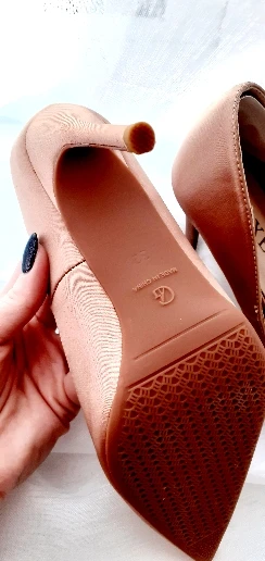 Туфли очень аккуратно сделаны, придраться не к чему. Цвет - розовато-бежевый, чуть темнее телесного. Колодка и высота каблука очень удобная. На стопу 27 см, средняя полнота, 45 размер в самый раз, пальцы в узком носке не зажаты. Доставка до СПб - две недели. Отдельное спасибо продавцу за подарки: запасные набойки, гелевые подушечки в носок туфель и накладки против натирания на пятку. Все по делу. Хотя по ощущениям - для этой пары обуви они не понадобятся)
