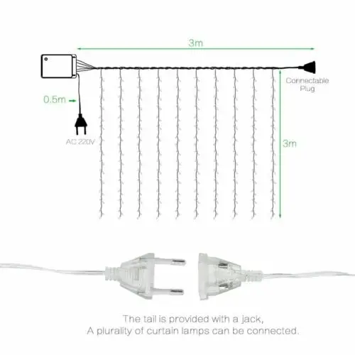СВЕТОДИОДНАЯ Гирлянда для занавесок, 3*3 м, 300 светодиодов, Рождес...