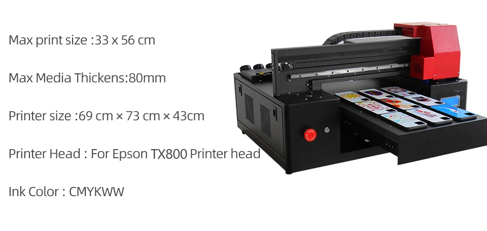 ApplicationFor Phone case metal glass tpu uv printing machine A3 uv