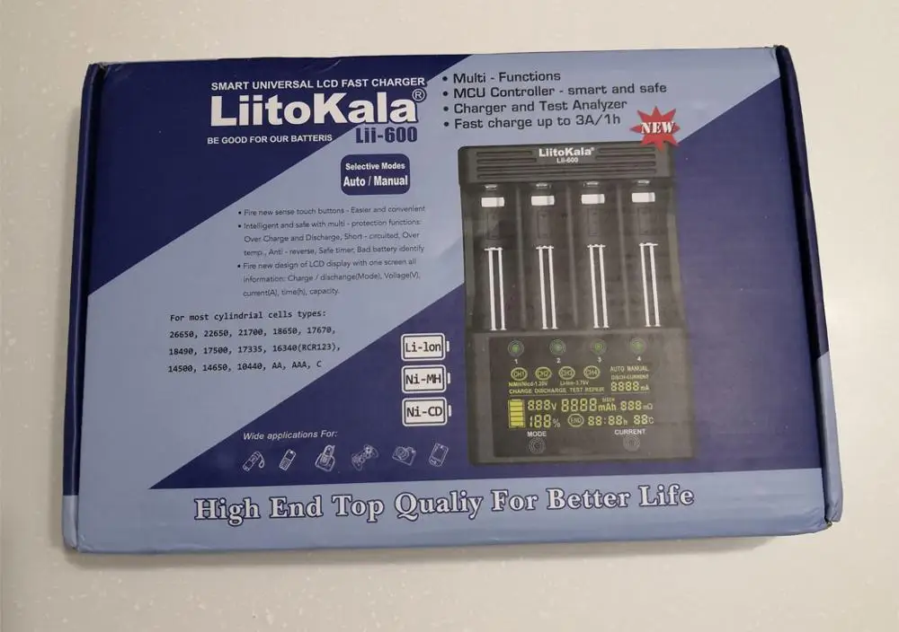 Доставка за 16 дней ! Все в отличном состоянии. Описание и технические характеристики соответствуют полностью. Может заряжать одновременно 4 шт. 26650 током 3 Ампера !!! Много функций для продвинутых пользователей. Отличный товар, в отличном магазине, от отличного продавца !