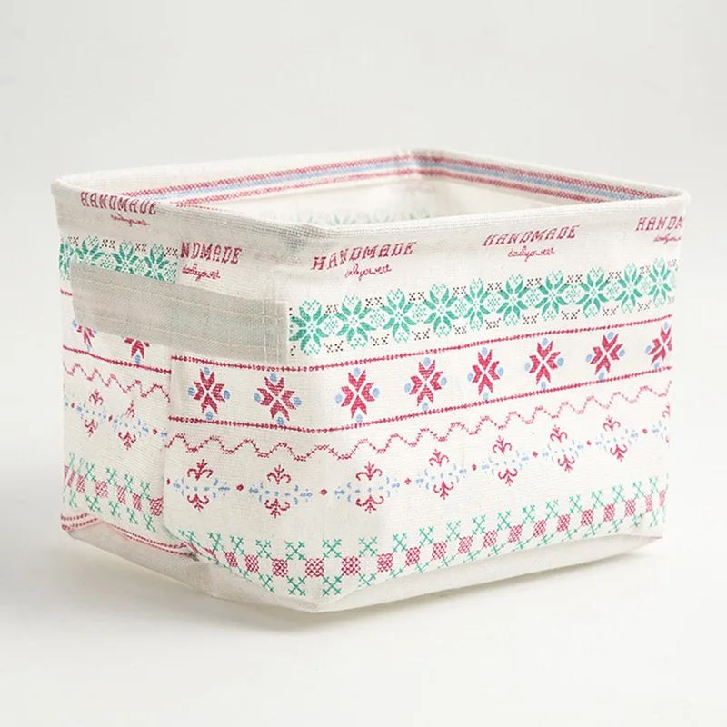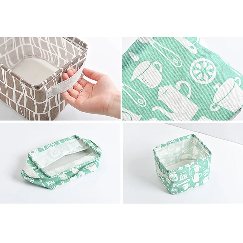 Складная Настольная корзина для хранения мелочей из хлопка и льна, Коробка Для Хранения нижнего белья и игрушек, органайзер для косметики и книг с ручкой, офисный контейнер