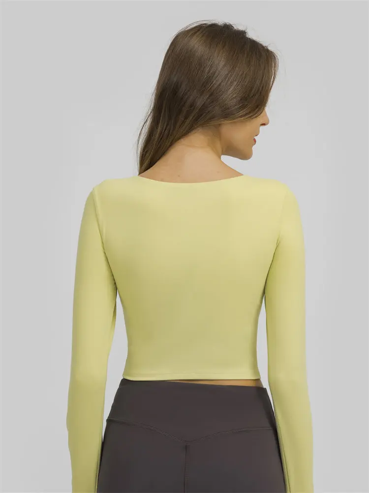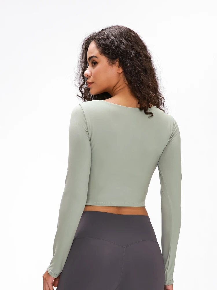 Nepoagym женский укороченный Топ с длинным рукавом и мягким бюстгальтером, Мягкий Топ для йоги, удобные рубашки для тренировок в тренажерном зале