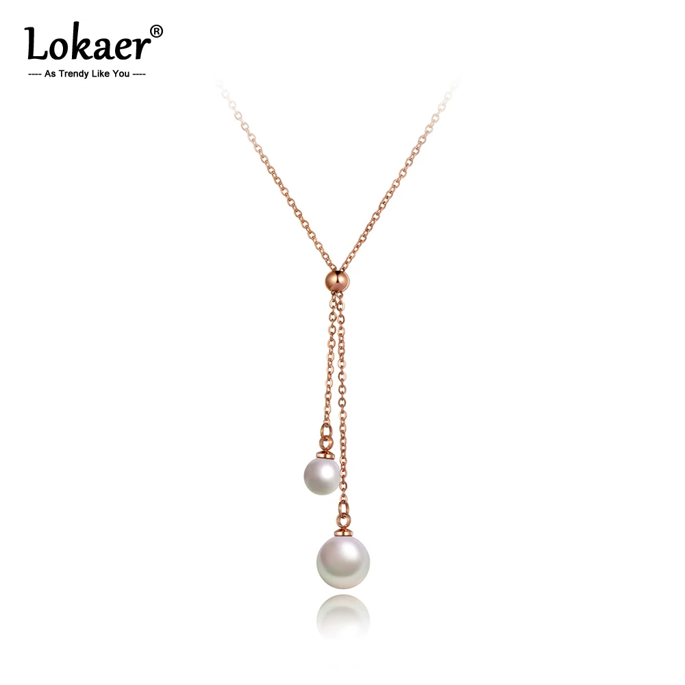 Lokaer модное ожерелье из титановой нержавеющей стали с белым прелестная жемчужная подвеска ювелирное изделие из розового золота свадебное ожерелье для женщин N20183