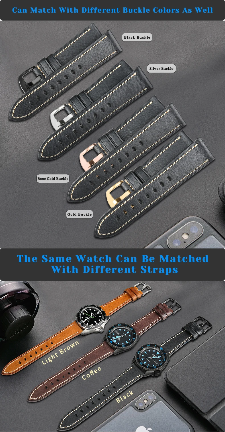 MAIKES, Ремешки для наручных часов из натуральной кожи, мягкий ремешок для наручных часов, удобный ремешок для часов из натуральной кожи, 22 мм, 24 мм, ремешок с пряжкой, инструмент