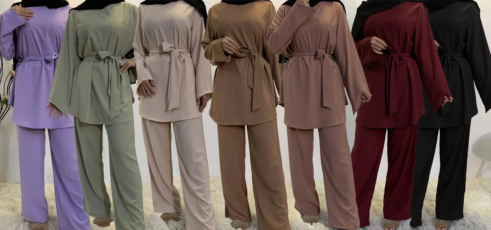 Женский комплект из мусульманской ниды, Свободный Длинный топ с длинными рукавами, Туника + длинные широкие брюки, однотонные штаны в турецком стиле, комплект из 2 предметов