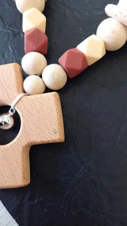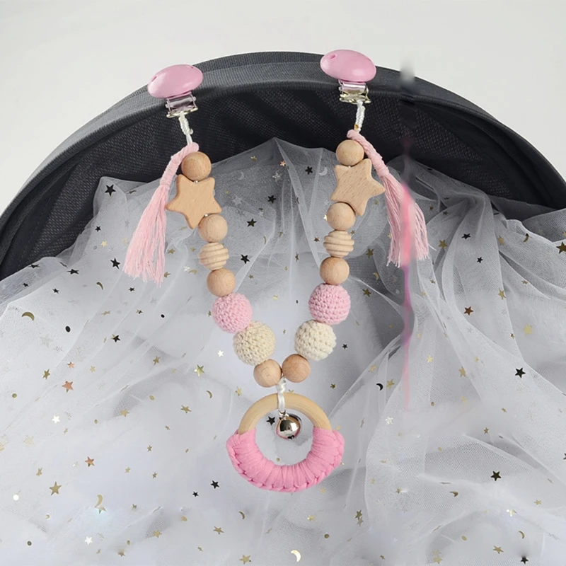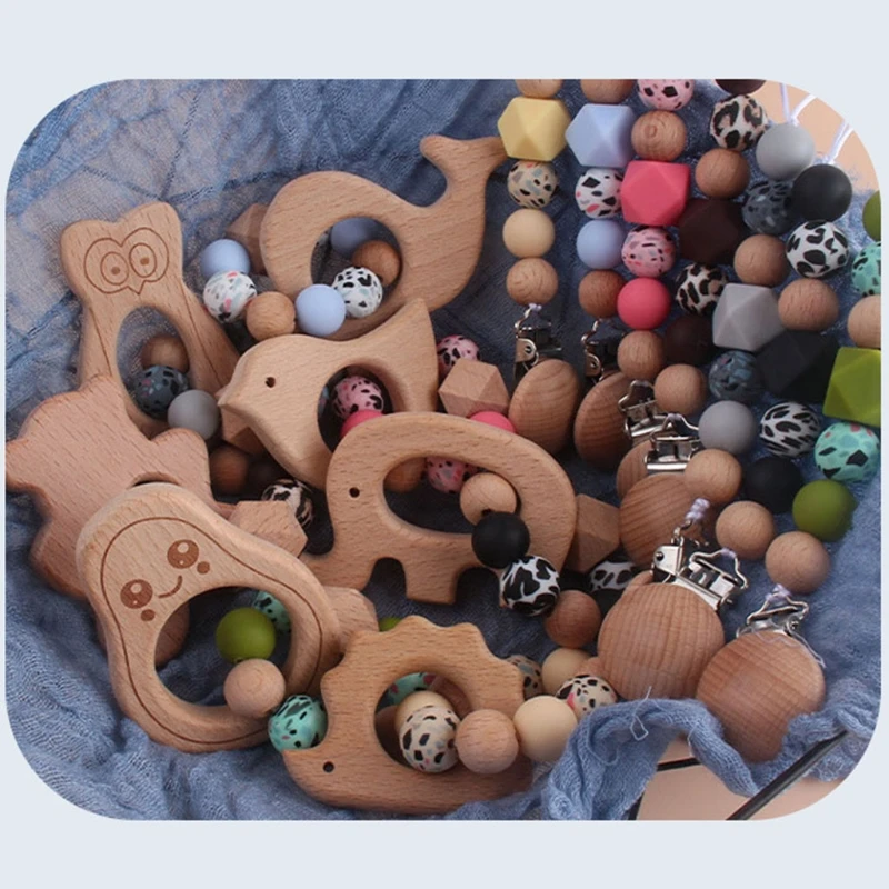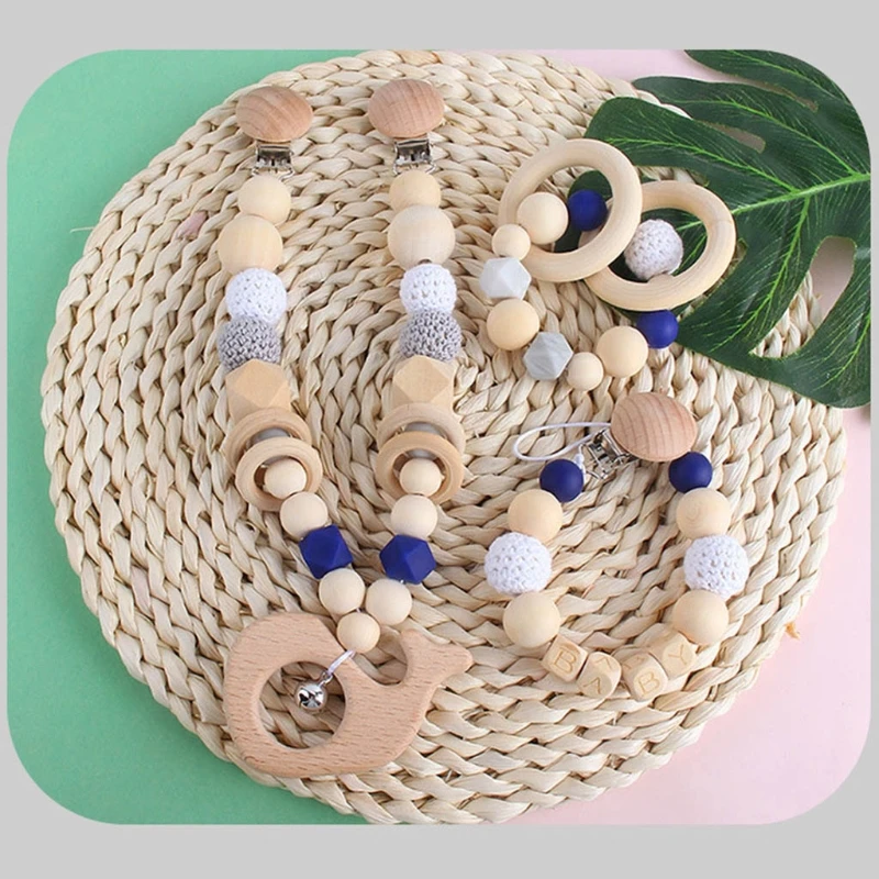 Деревянный Прорезыватель для зубов для детей, цепочка-зажим для соски, детских игр в тренажерном зале, деревянный жевательный браслет, детская игрушка для коляски