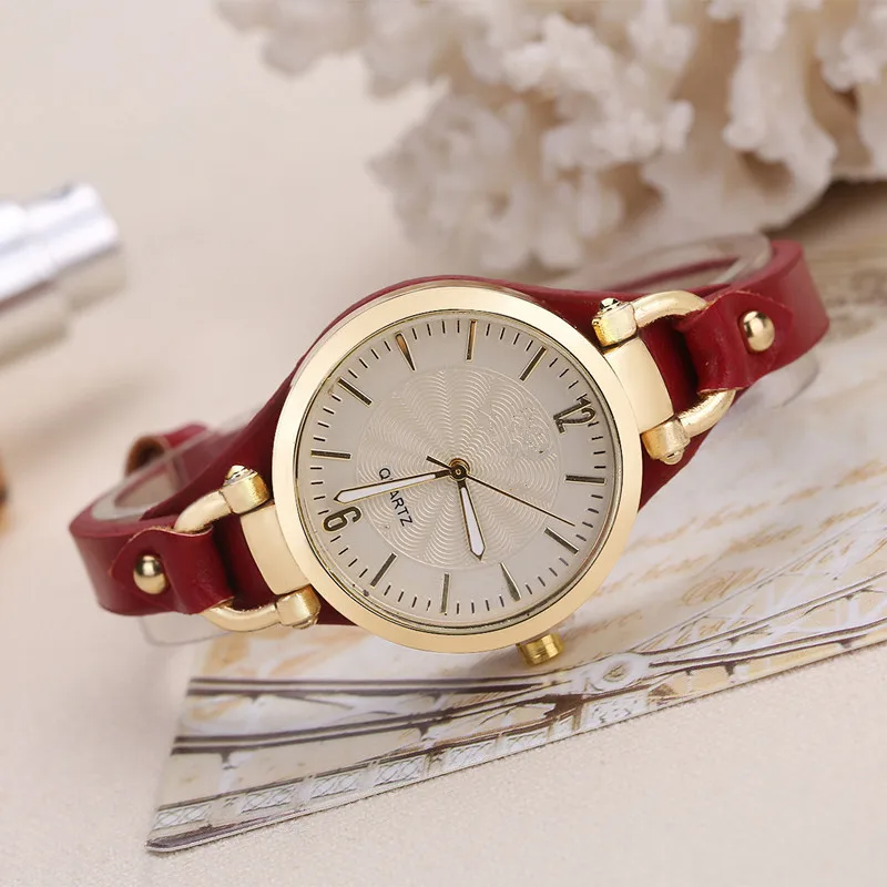 Часы наручные женские с круглым циферблатом, повседневные аналоговые кварцевые модные роскошные с ремешком из искусственной кожи, с заклепками, подарок