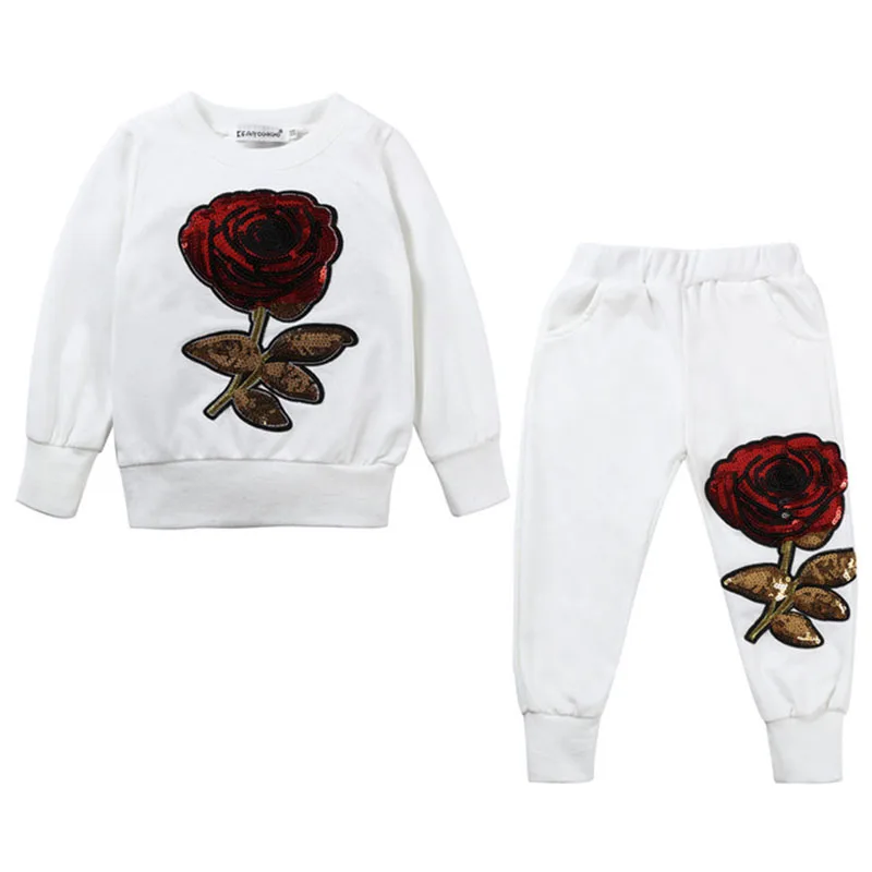 Комплекты одежды для маленьких девочек осенне-зимняя одежда для девочек Детский костюм, спортивный костюм для детей, топ + штаны, От 3 до 7 лет