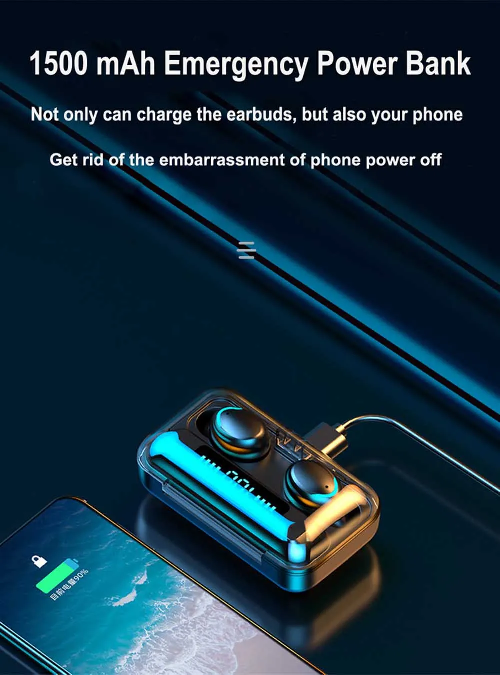TWS-наушники F9 с поддержкой Bluetooth 5,0 и внешним аккумулятором ...