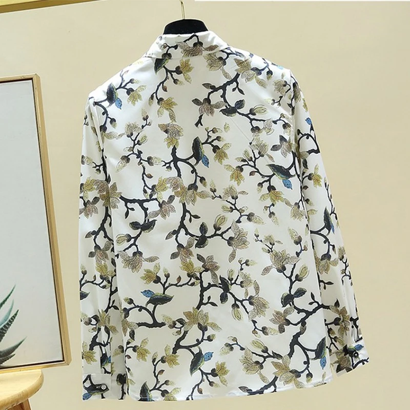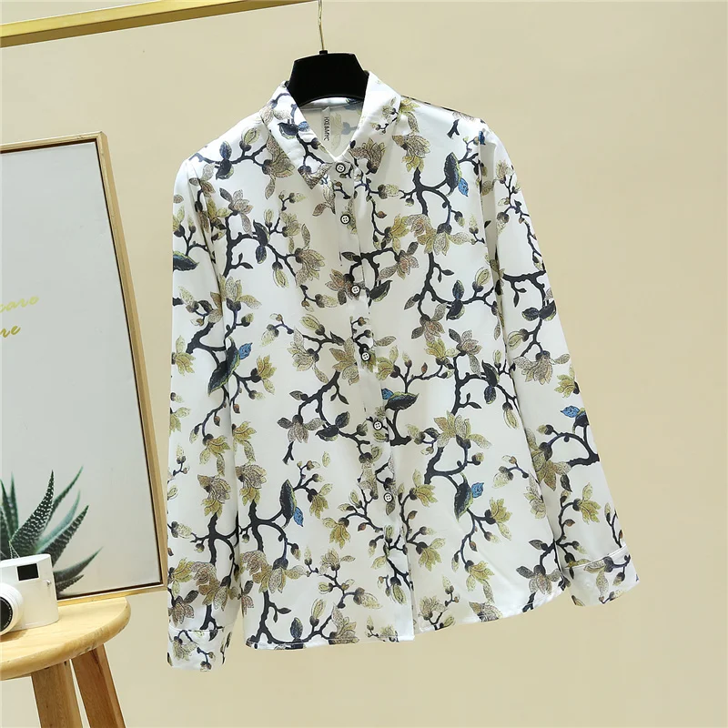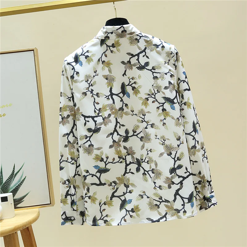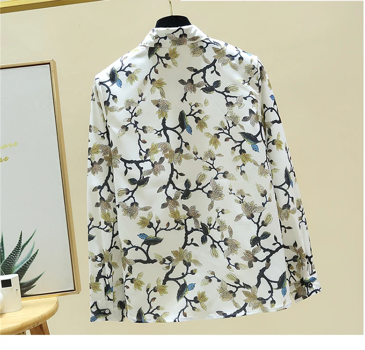 Модная новинка; Женские винтажные туфли шифоновая блузка для женщин 2021 размера плюс блузки для женщин повседневные Кардиган с принтом рубашка с длинными рукавами для женщин топы 11511