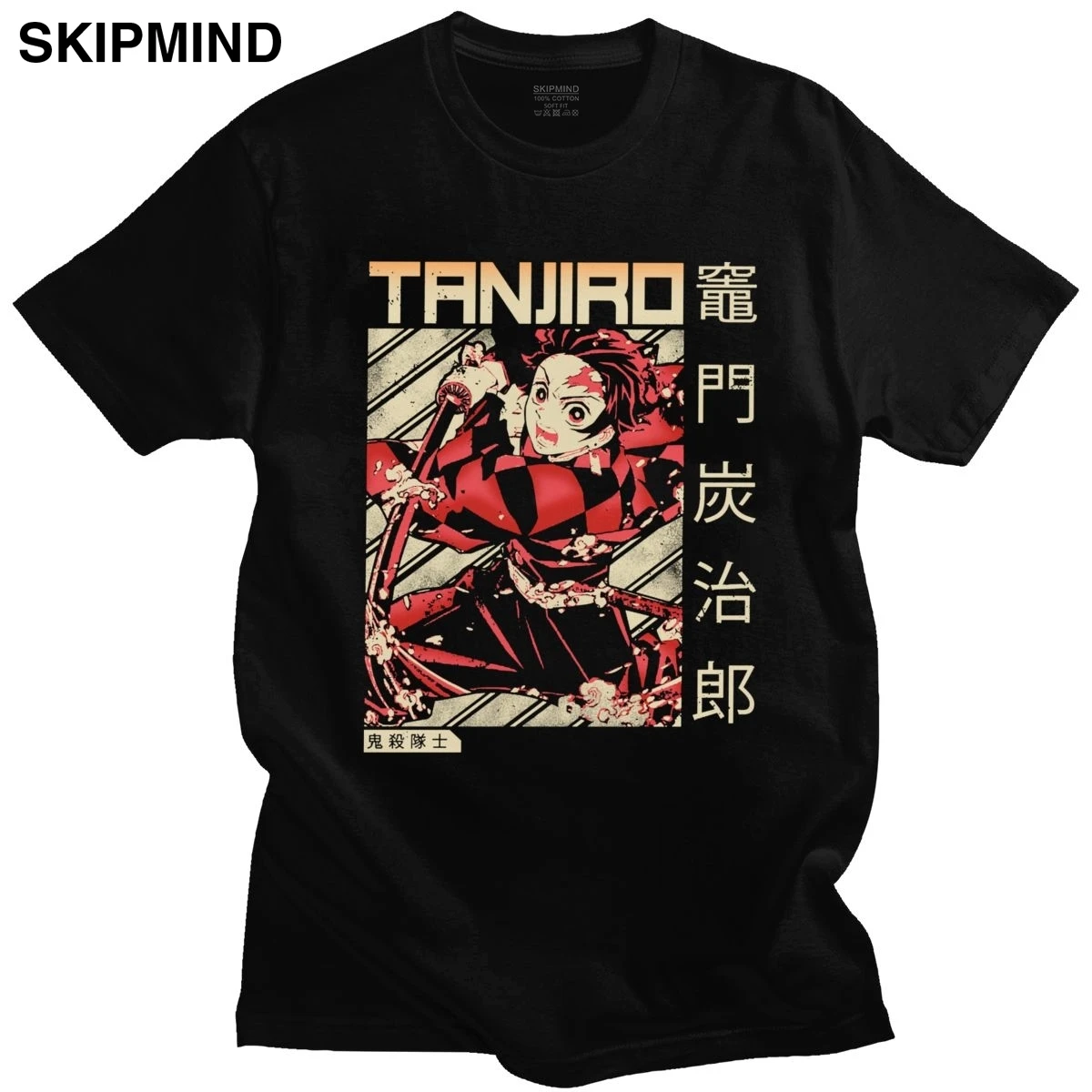 Футболка мужская хлопковая с коротким рукавом, винтажная тенниска с принтом Аниме Манга, рассекающий демонов, одежда Kimetsu No Yaiba Tanjiro Kamado