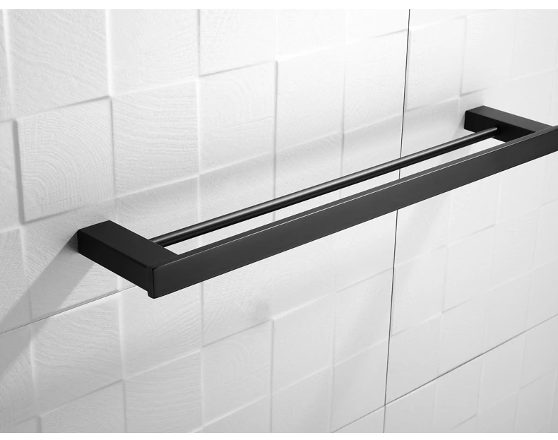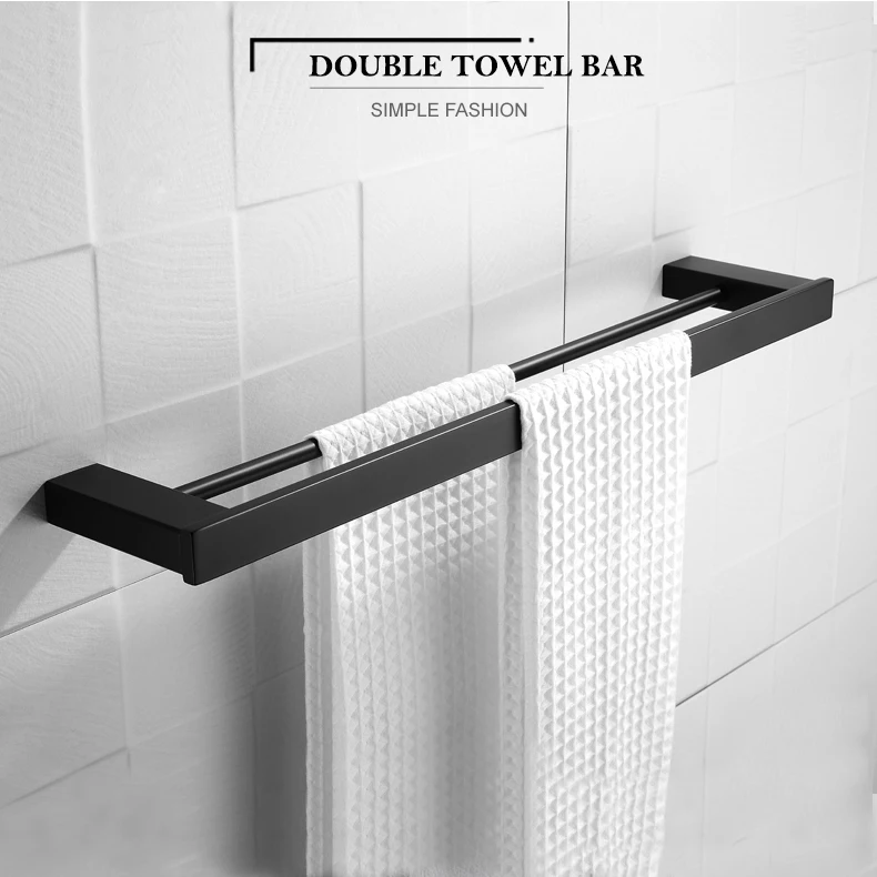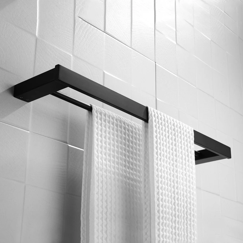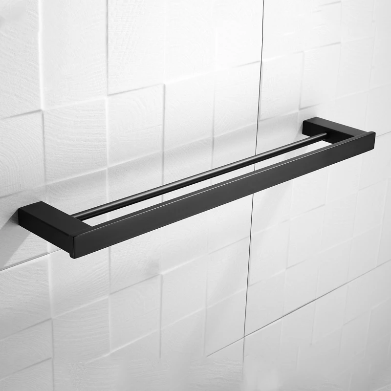 Матовая черная двойная квадратная вешалка для полотенец, настенная ...