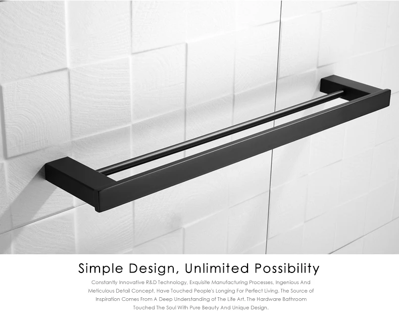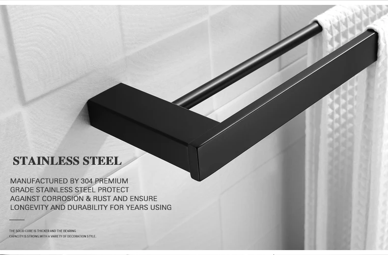 Особенности и характеристики:Полотенцесушитель/держатель для полотенец/вешалка для полотенецМатериал: Прочная нержавеющая сталь SUS 304Использование: ванная комната/душевая комната/туалет/кухняЦвет: матовый черныйТип: аксессуары для ванной комнатыУстановка: НастенныйВключая все монтажные фитинги