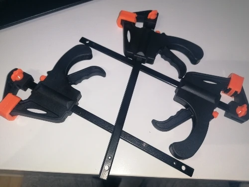 Нормальные струбцины. Из плюсов- можно быстро прижать детали, пока не засох клей. Серьезного усилия явно не переживут, зажимать надо без фанатизма. Ели нужно прижать посильнее- лучше использовать несколько штук. Брались под склейку мелких деталей.