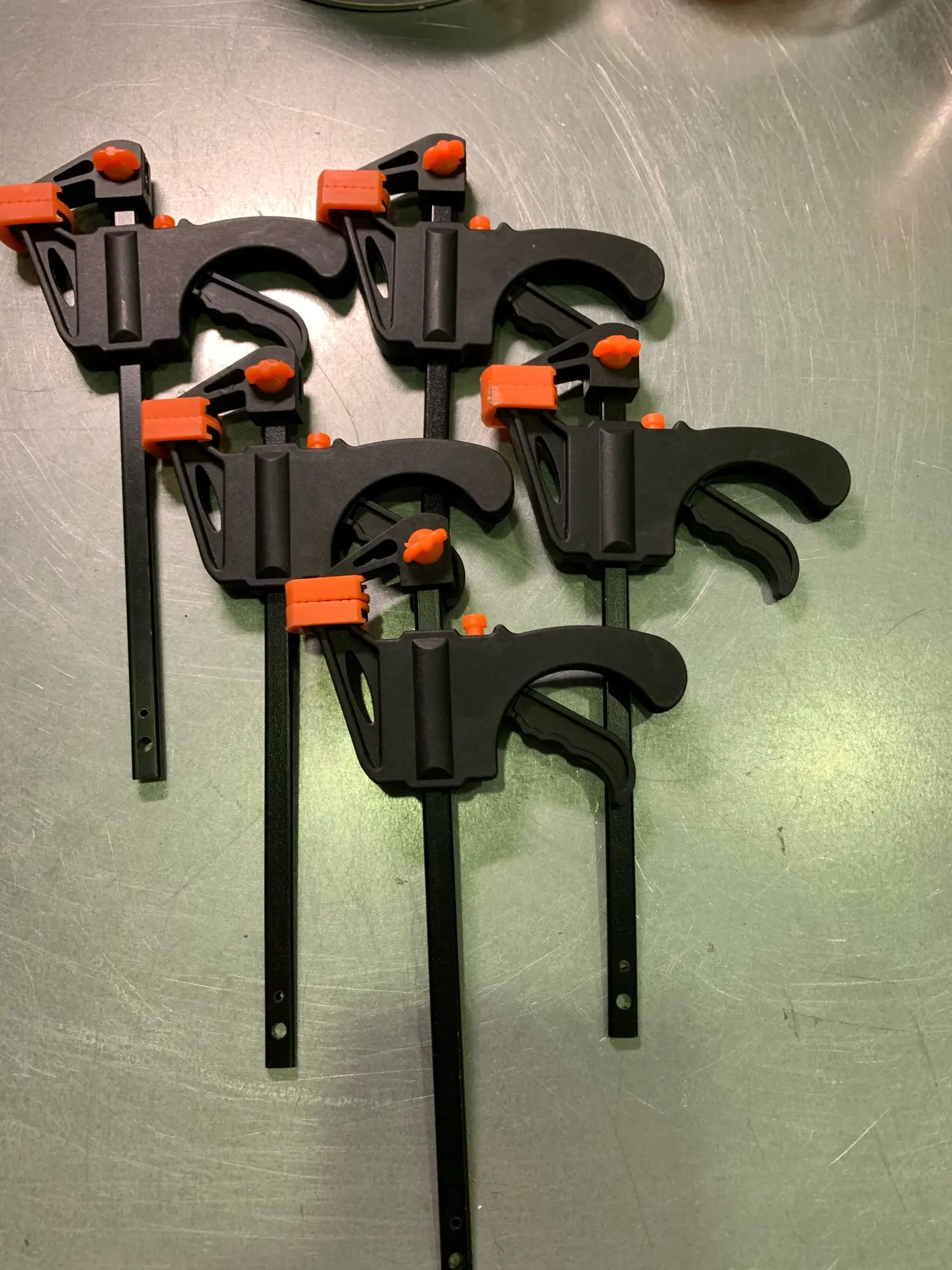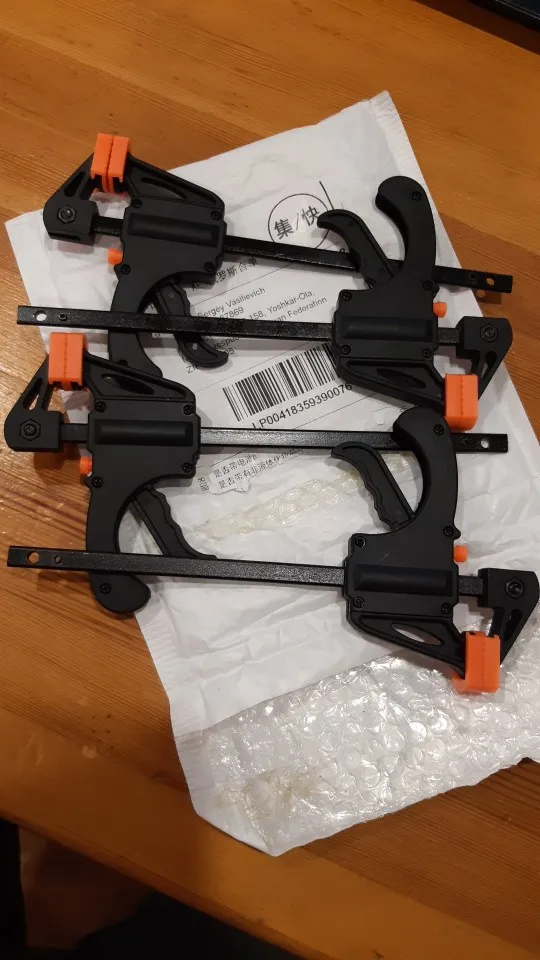 Заказ шёл 2 недели, что очень неплохо. Доставка осуществлялась 5post. Это новая услуга Пятерочки, что тоже не плохо. Получение на кассе, а не в почтомате (обратите внимание). Из 4 шт. заказанных мною, одна была не сов ем работоспособной, не хватало глубины кнопки, которая освобождает от зажима. Разобрал, подложил на металлическую пластину прокладочку и заработала. В целом, струбцины не плохие, не для серьёзных зажимов. А так, для домашнего использования, думаю, подойдут.