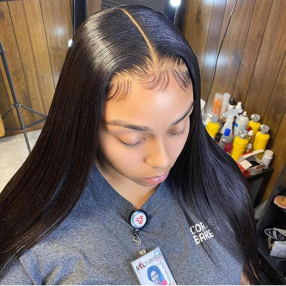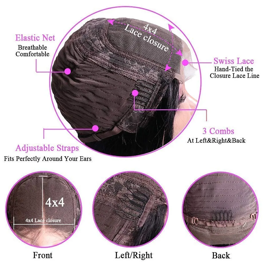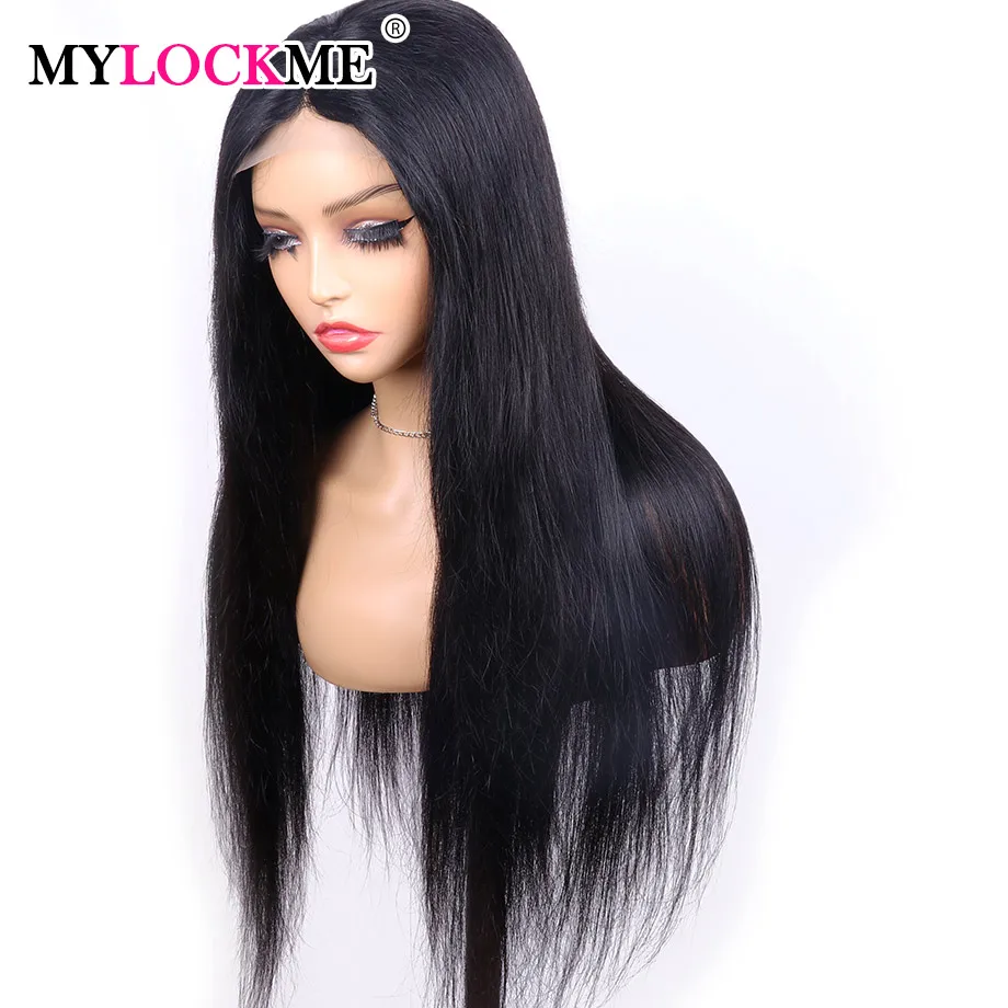 Прямые черные человеческие волосы парики 4x4 HD прозрачные парики на сетке для женщин перуанские волосы Remy Предварительно выщипанные волосы Remy MYLOCKME