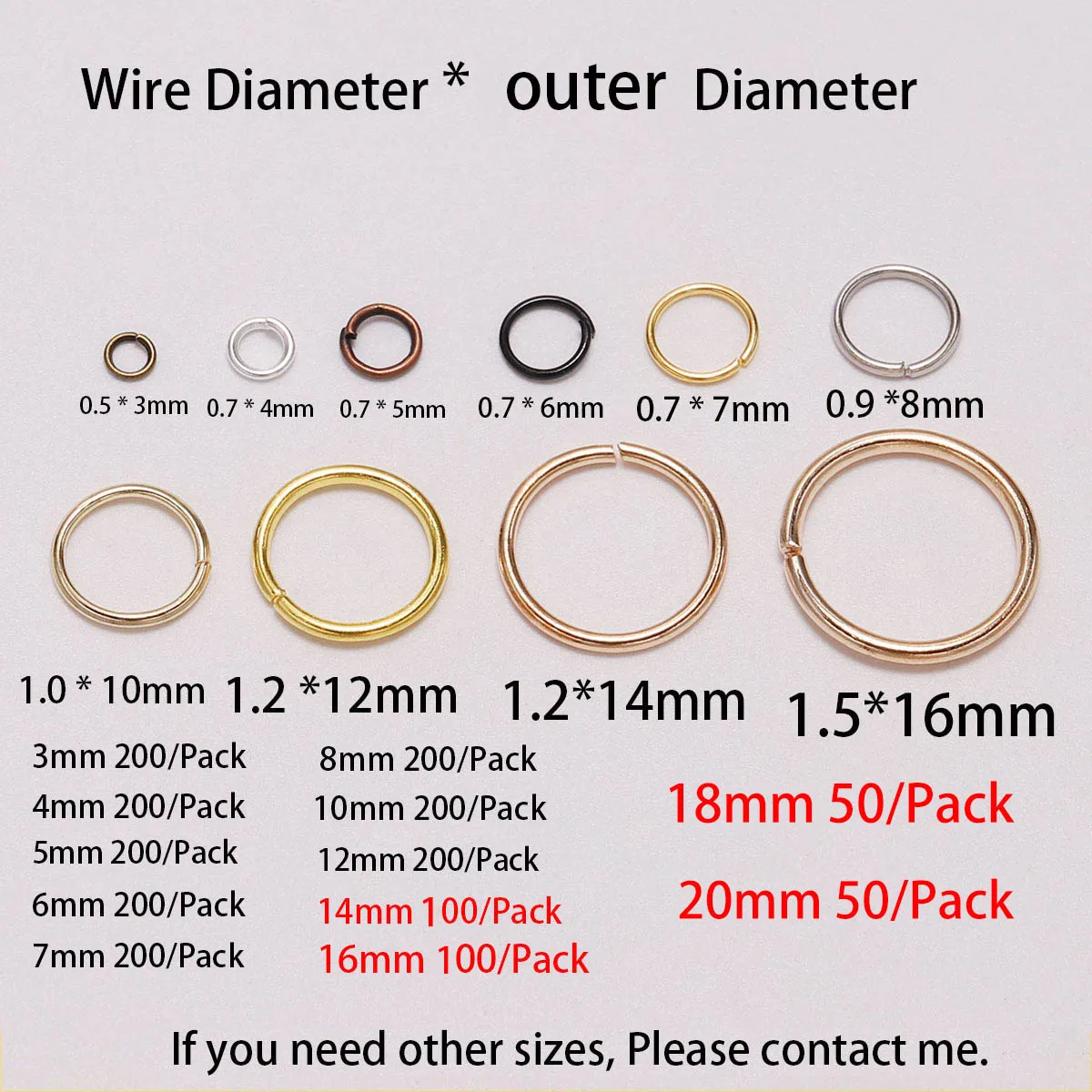 Материал: медная посылка из железа Включает в себя: 200 шт. (в комплекте) Вес изделия :( 3*0,5 мм) (4*0,7 мм),(5*0,7 мм),(6*0,7 мм) (7*0,7 мм),(8*0,9 мм),(10*1,0 мм),(12*1,2 мм),(14*1,2 мм)(16*1,5 мм) Подходит: изготовление материалов ручной работы DIY ожерелье и браслет цепочка